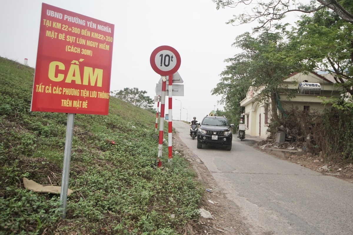 Dù chính quyền đã treo biển cấm và cảnh báo sạt lở nguy hiểm nhưng nhiều người ô tô, xe máy vẫn cố tình phá rào đi vào đường đê Yên Nghĩa (quận Hà Đông, Hà Nội) đang sụt lún nghiêm trọng.