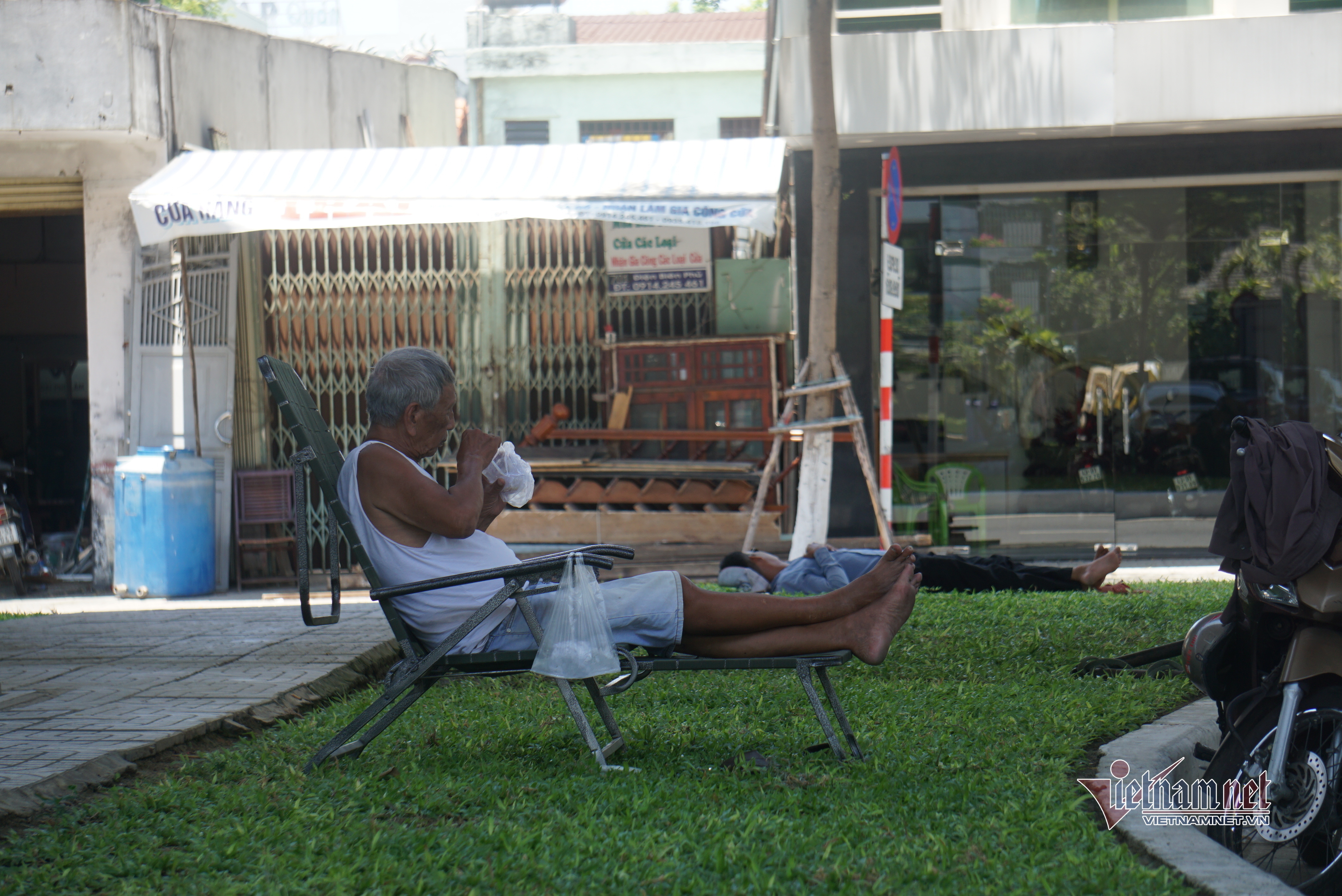 Vào buổi trưa, nhiều công nhân tìm đến các gầm cầu bắc qua sông Hàn, cầu vượt ngã Ba Huế, để trốn nắng.