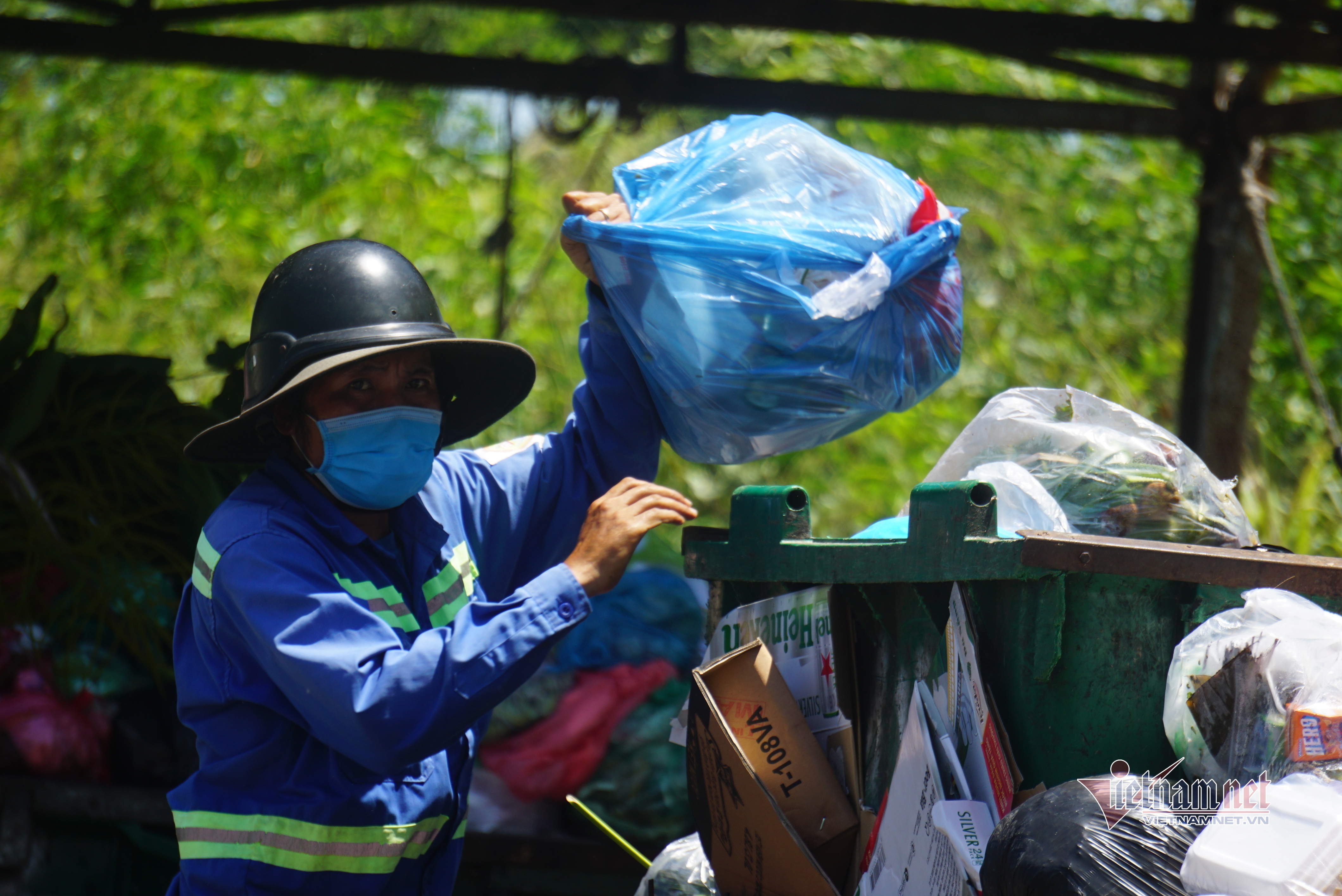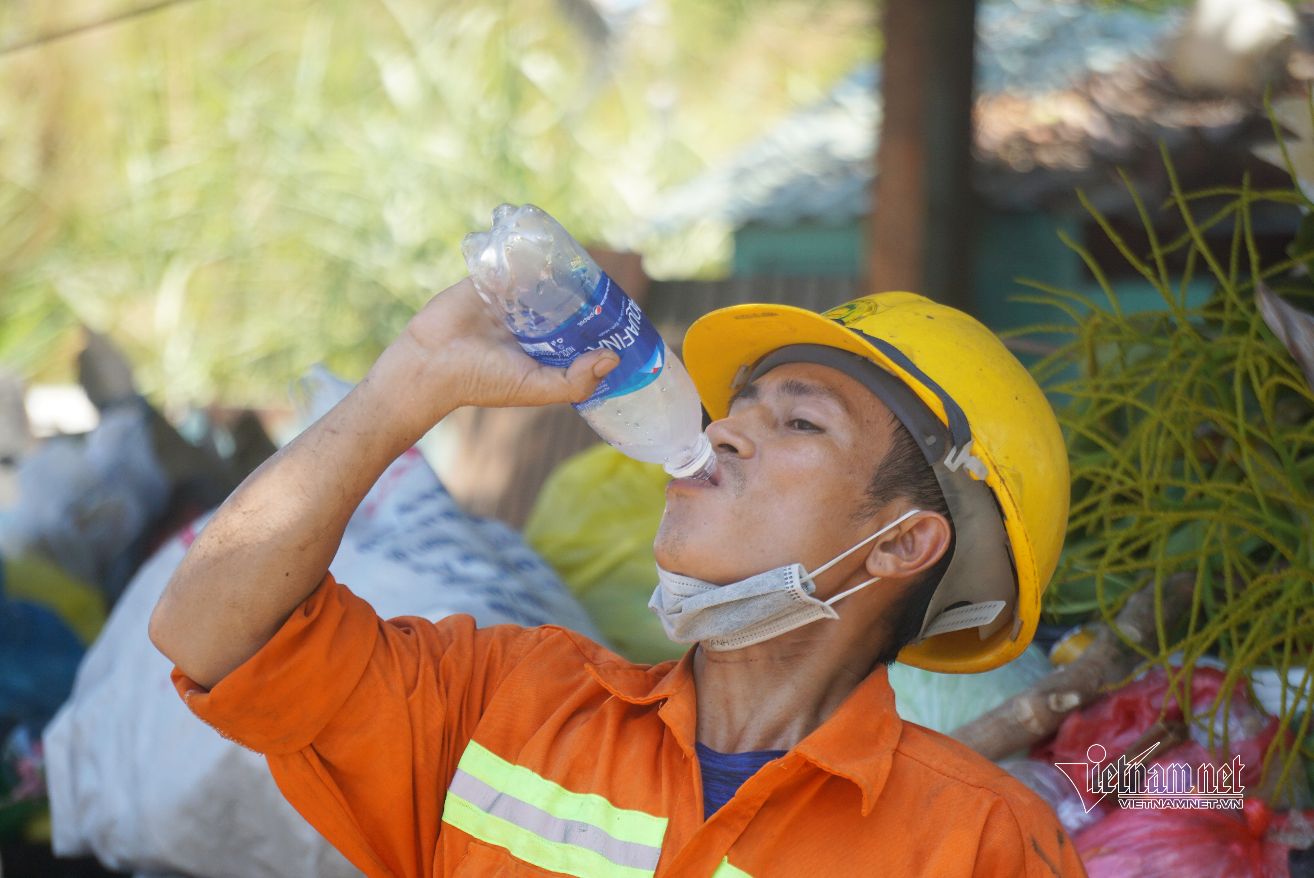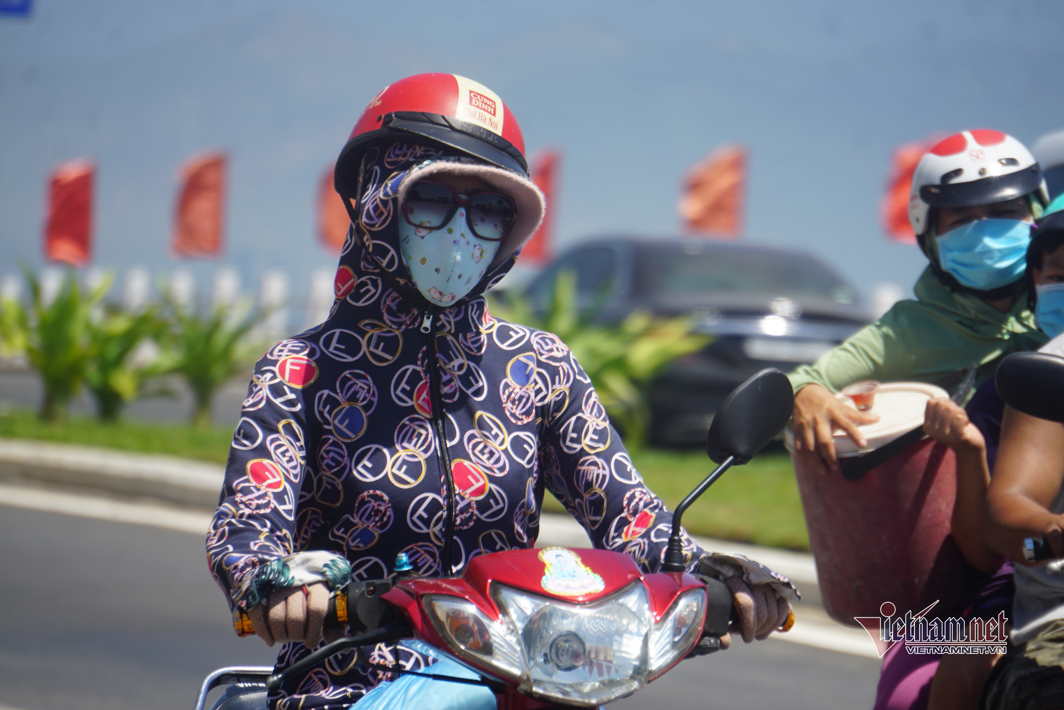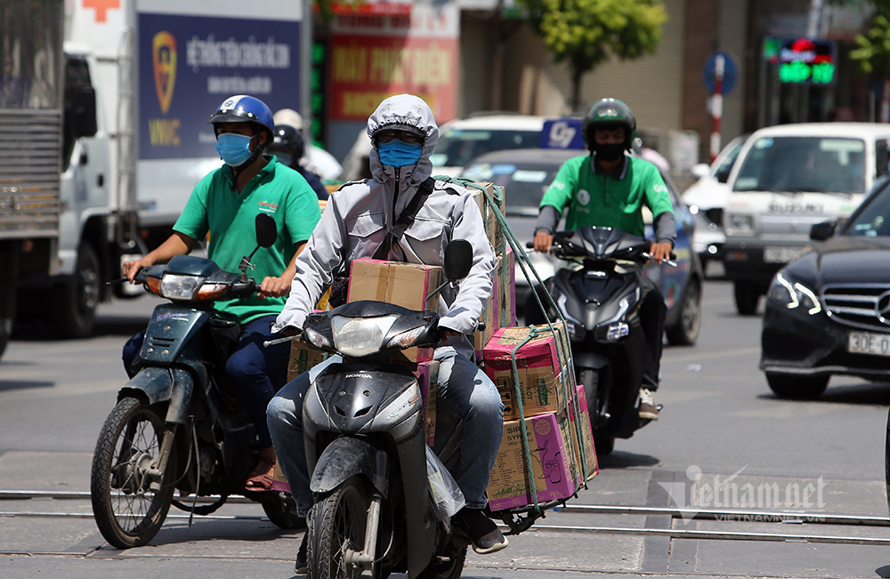 Để chống chọi với cái nóng gay gắt, người dân khi đi ra ngoài đường mặc áo chống nắng, bịt kín khẩu trang, đeo kính râm...Người dân cũng hạn chế ra đường khi không có việc cần thiết.