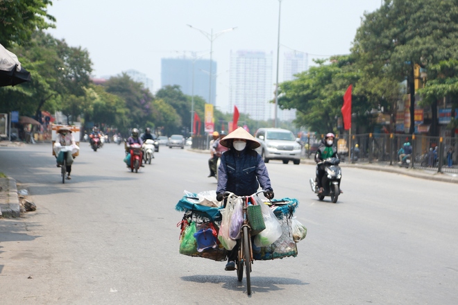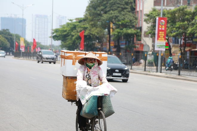Thời tiết ở Hà Nội những ngày gần đây nắng nóng gay gắt, người dân lao động chật vật làm việc vì mưu sinh.