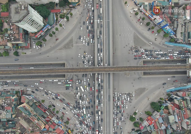 Từ khoảng 9h sáng 30/4 hướng giao thông từ mọi ngả đổ về Khuất Duy Tiến - Nguyễn Trãi vô cùng đông đúc. Theo ghi nhận của PV, phía trên cầu vượt cạn lẫn phía dưới đường ken đặc phương tiện hướng từ Phạm Hùng về Pháp Vân.
