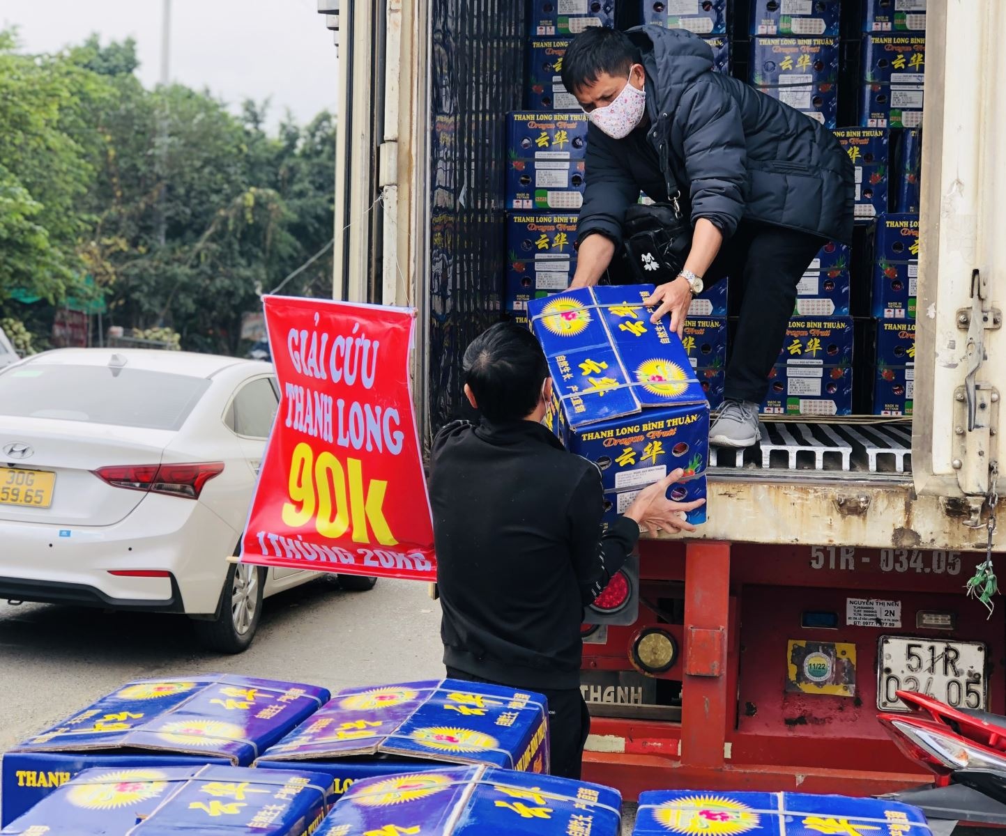 Anh Nguyễn Tuấn, lái xe kiêm chủ hàng thanh long cho biết: "Do lượng hàng hoá ùn ứ tại khu vực cửa khẩu tỉnh Lạng Sơn vẫn rất lớn, trong khi năng lực giải phóng hàng mỗi ngày còn hạn chế, nên chúng em đã phải quay đầu trở về, gỡ hàng bán lẻ cho bà con hy vọng sớm tiêu thụ hết số trái cây này bù vào chi phí đi lại, ăn ở, xăng dầu…".