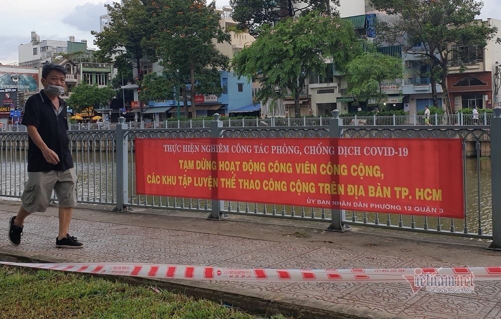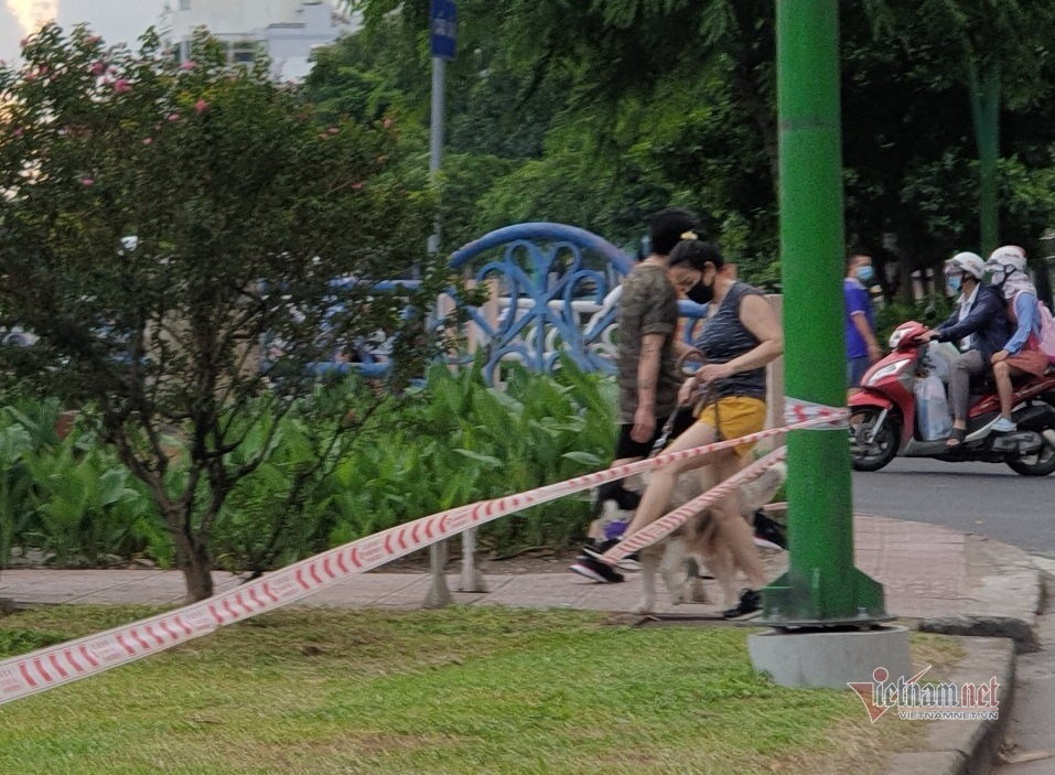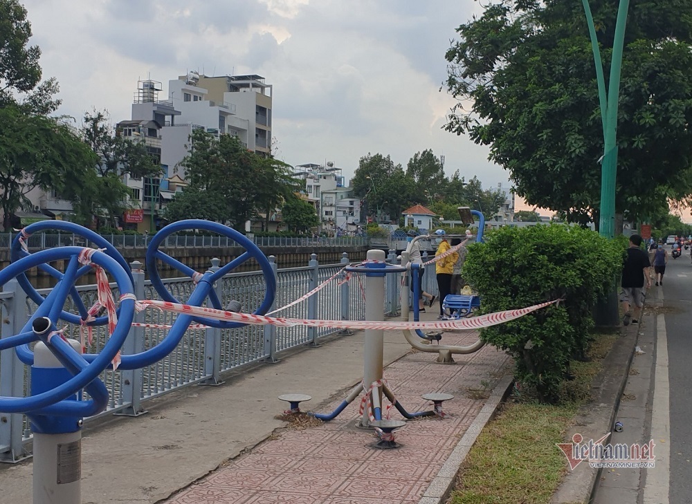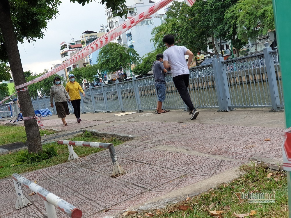 Công viên dọc kênh Nhiêu Lộc- Thị Nghè qua địa bàn các quận Phú Nhuận, Tân Bình, quận 3, quận 1, quận Bình Thạnh, mặc dù lực lượng chức năng đã căng dây phong tỏa, đặt biển tuyên truyền "dừng hoạt động" nhưng người dân vẫn vượt rào vào tập thể dục, dắt thú cưng dạo mát.