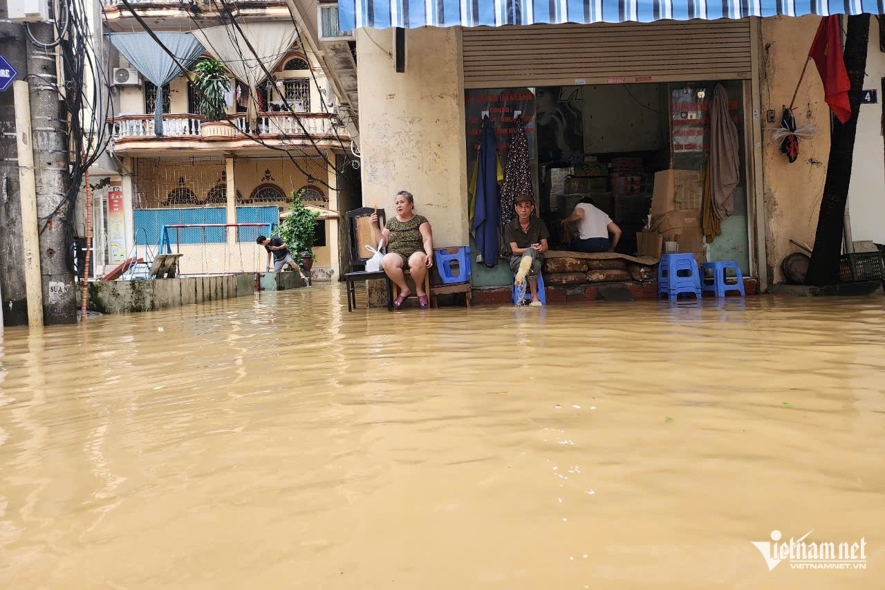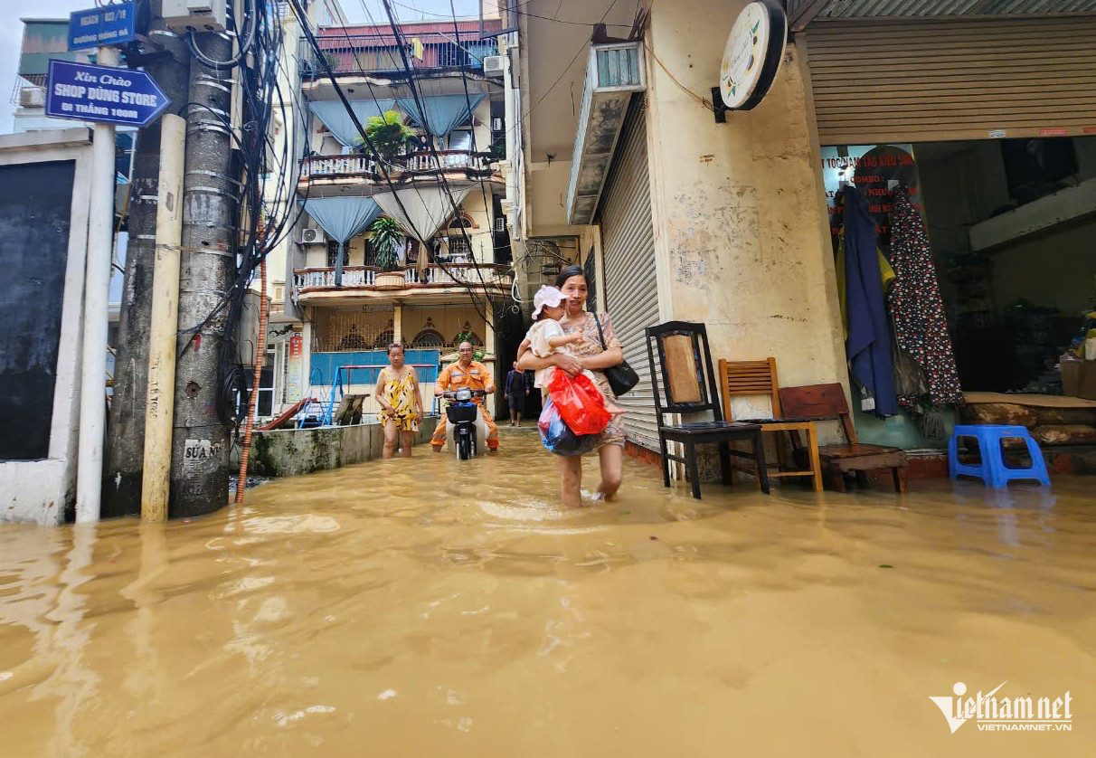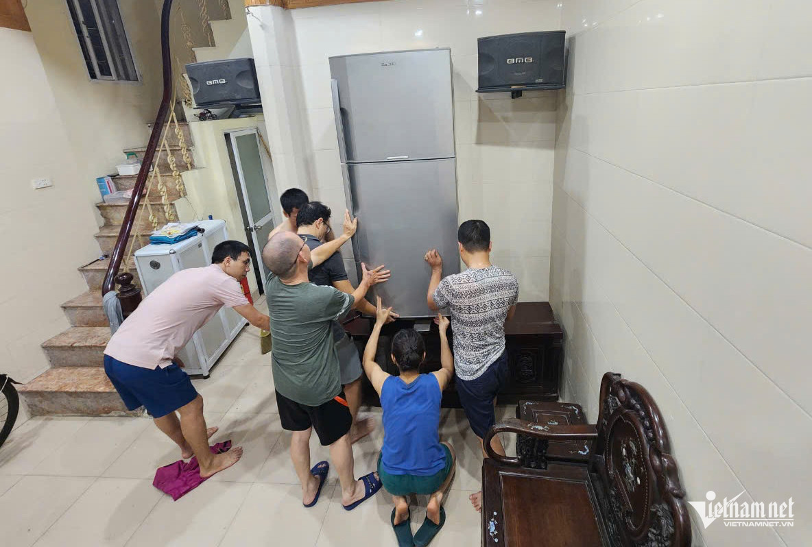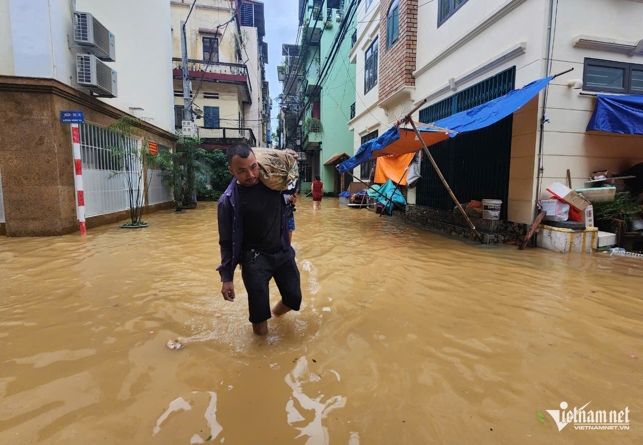 Trưa nay (10/9), người dân trong ngõ 823 Hồng Hà (phường Chương Dương, Hoàn Kiếm) hối hả chạy đồ đạc khi nước sông Hồng tràn vào.
