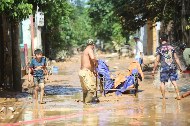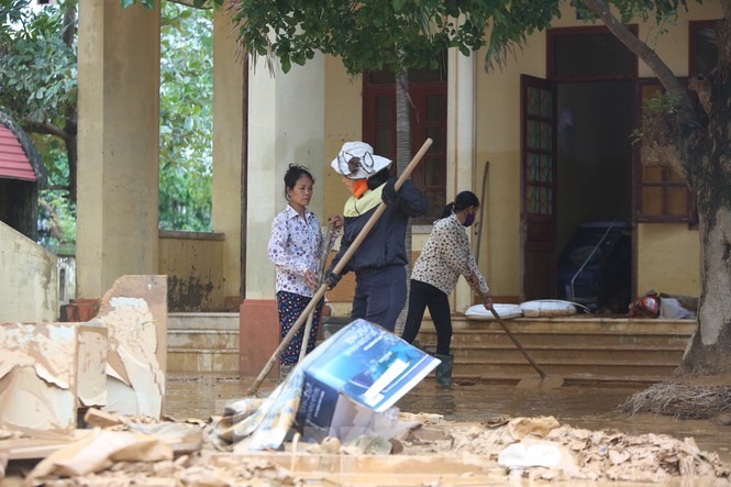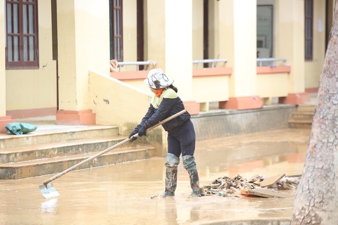 Trời Quảng Bình hửng nắng, nhiều nơi lũ rút hoàn toàn, người dân tất bật dọn dẹp vệ sinh, ngấn nước mắt bới bùn đất vớt vát tài sản còn sót lại.