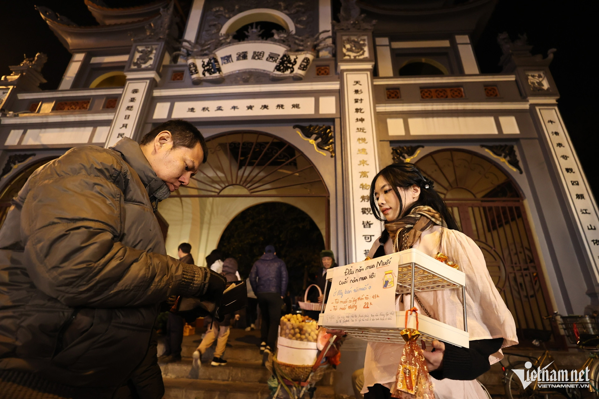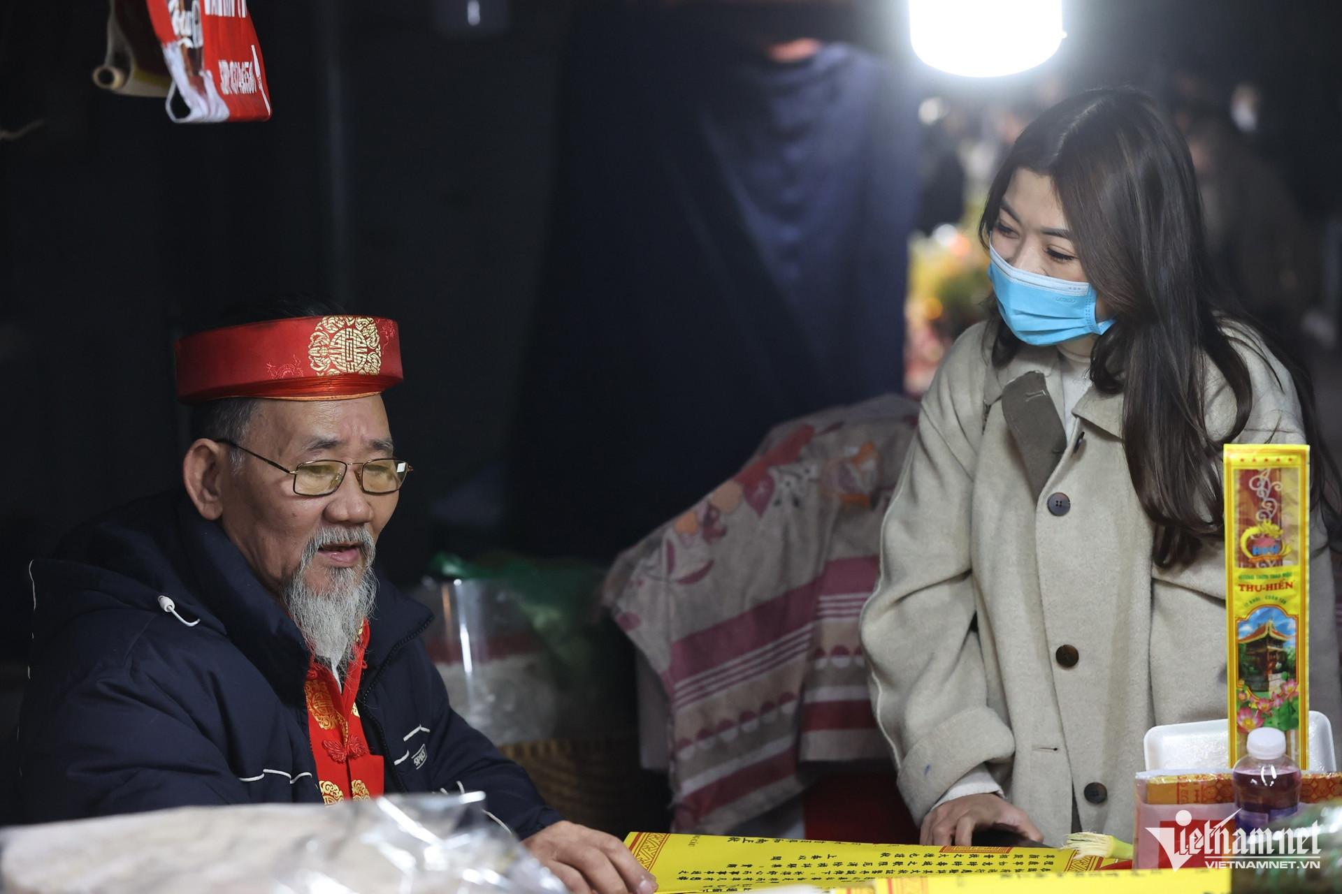 Dịch vụ viết sớ ngoài cổng phủ Tây Hồ làm việc thâu đêm. Năm nay cũng là năm đầu tiên chị Lụa đi lễ tại phủ vào đêm giao thừa. Người phụ nữ bày tỏ mong muốn gia đình sang năm mới nhiều sức khoẻ, công việc kinh doanh gặp nhiều may mắn.