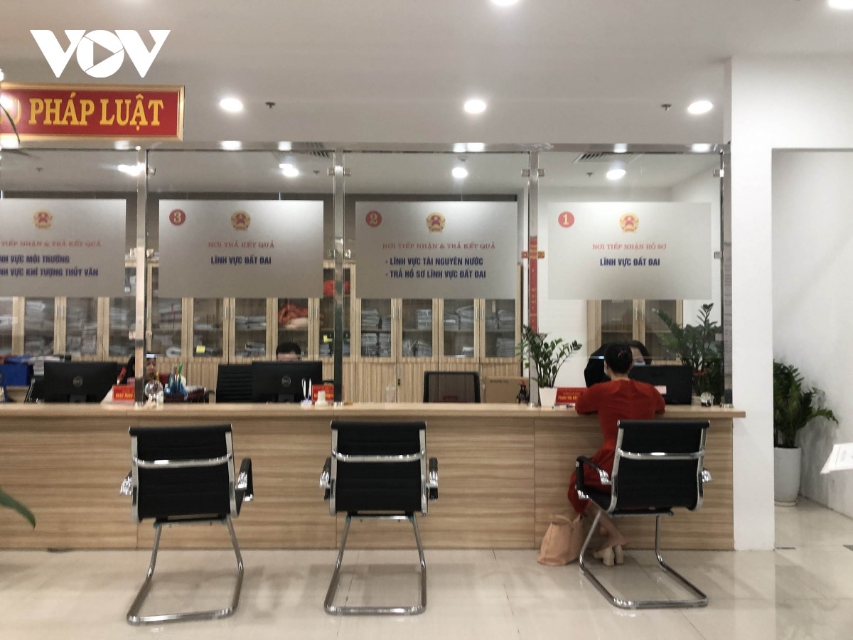 | Bộ phận một cửa tiếp nhận hồ sơ đăng ký đất đai quận Tây Hồ số 657 Lạc Long Quân sáng nay (25/2) |