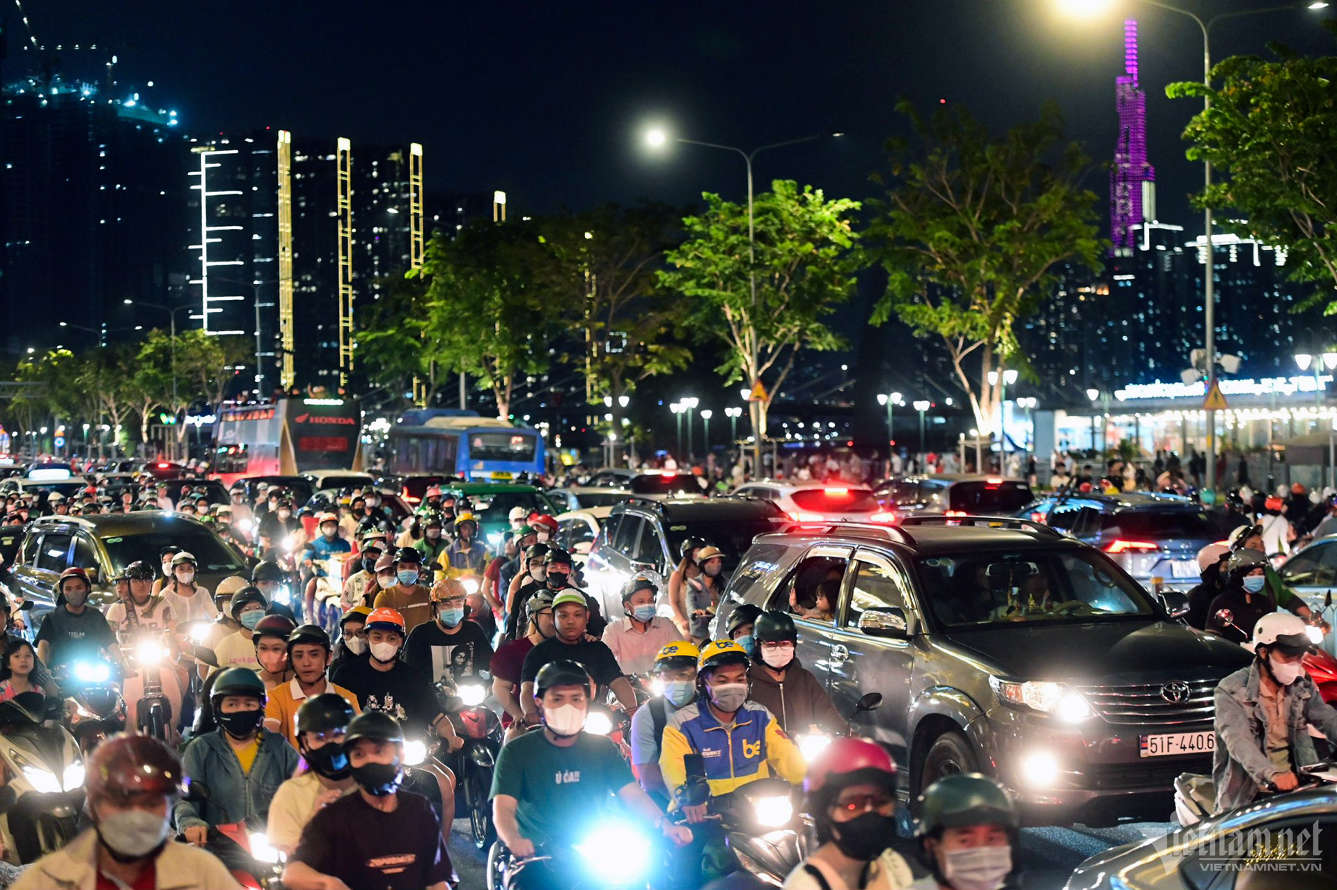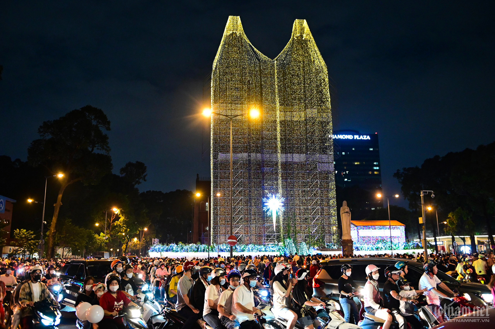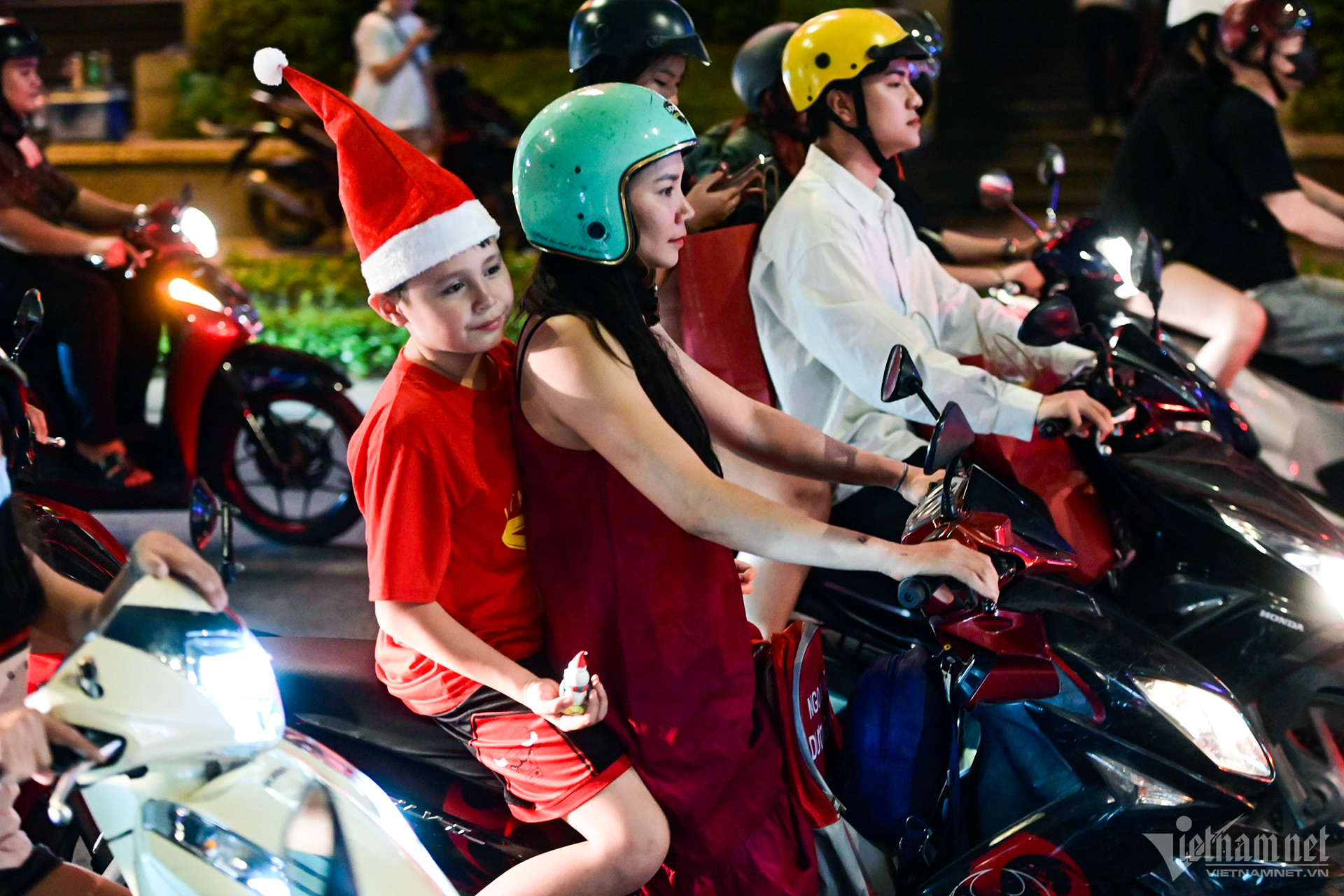 Các điểm vui chơi ở trung tâm TP.HCM và Hà Nội đều đông nghẹt người và xe khi các gia đình và nhóm bạn trẻ đổ ra đường đón Noel.