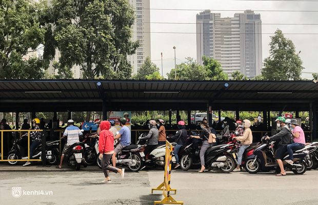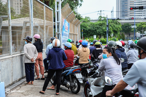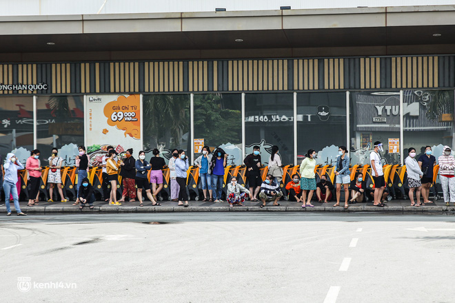 Từ sáng sớm đã có rất đông người dân đứng xếp hàng dài cả trăm mét tại các siêu thị, trung tâm thương mại chờ đợi vào mua hàng hóa, thực phẩm trong những ngày TP.HCM giãn cách xã hội.