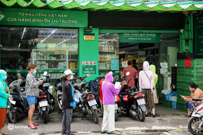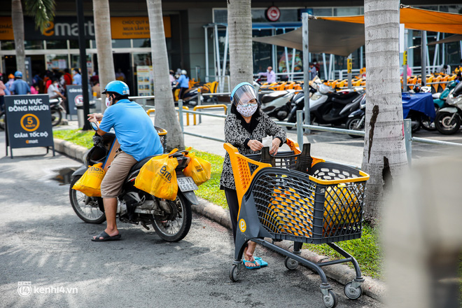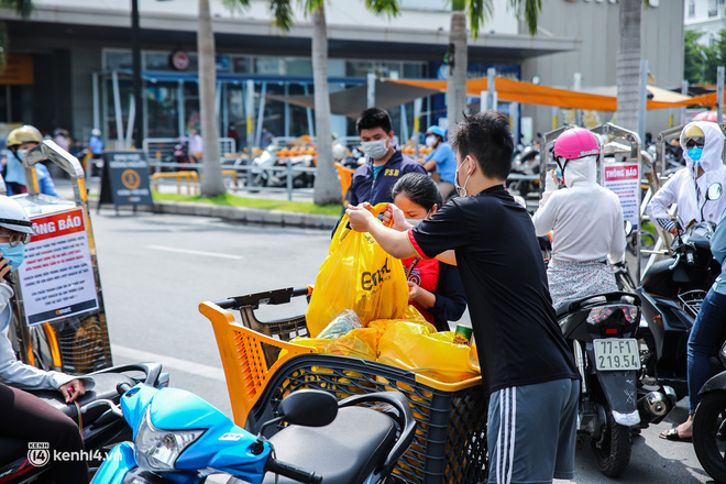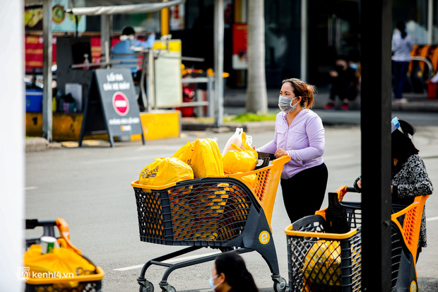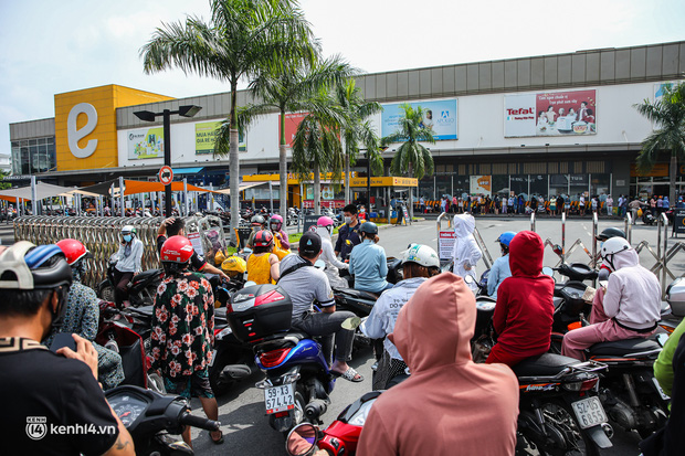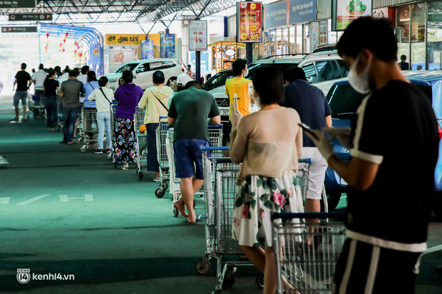 Sáng ngày 14/7, tại nhiều siêu thị, TTTM trên địa bàn thành phố Hồ Chí Minh đã có rất đông người dân đến từ sớm xếp hàng dài chờ đến lượt vào mua sắm. Trong giai đoạn dịch Covid-19 đang diễn biến phức tạp, nhiều người dân đã chuẩn bị sẵn cả khẩu trang, kính chống giọt bắn và găng tay y tế và giữ khoảng cách an toàn để phòng dịch trong quá trình mua hàng hóa.