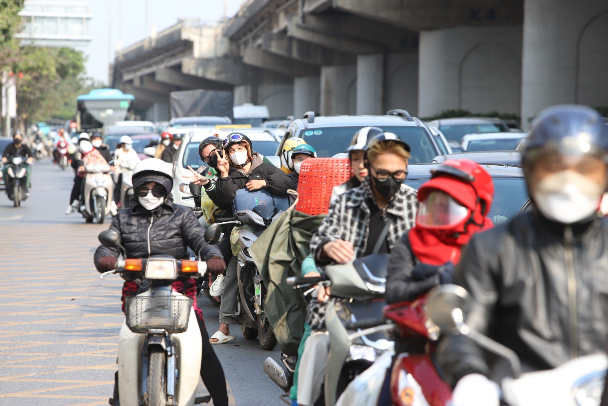 Phía dưới đường hướng từ cầu Thanh Trì về Giải Phóng lưu lượng phương tiện cũng rất đông. Trong các ngày mùng 4, mùng 5 Tết, Phòng CSGT Công an TP Hà Nội sẽ tập trung lực lượng phân luồng, hướng dẫn giao thông tại tất cả các cửa ngõ Thủ đô, các tuyến giao thông chính, bảo đảm giao thông thông suốt phục vụ nhân dân quay trở lại sau kỳ nghỉ Tết.