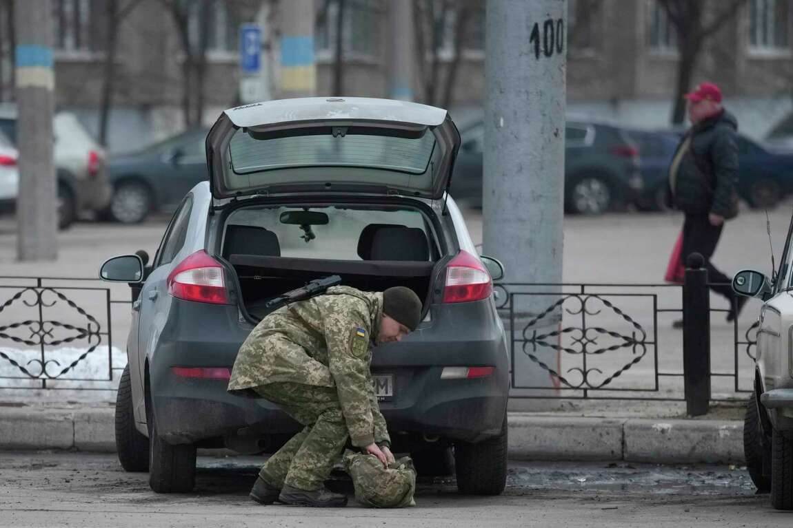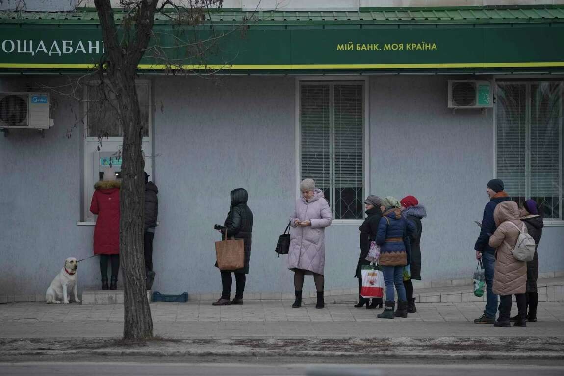 | Người dân Kharkiv hoảng sợ xếp hàng bên ngoài máy ATM của siêu thị |