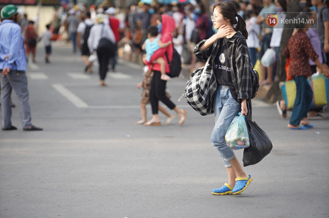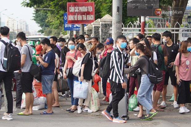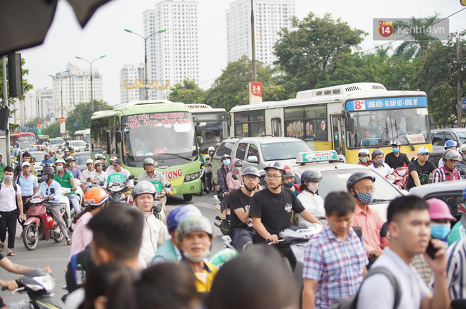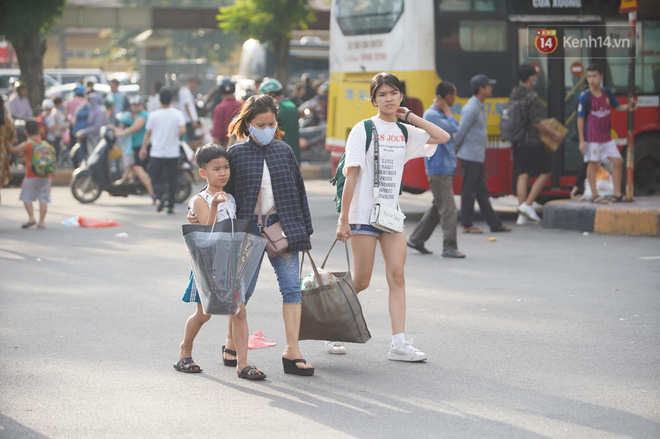 Trong khi đó tại Bến xe Giáp Bát, lượng hành khách đổ về đây đông đúc khiến giao thông tại khu vực cổng bến lộn xộn, ùn tắc.