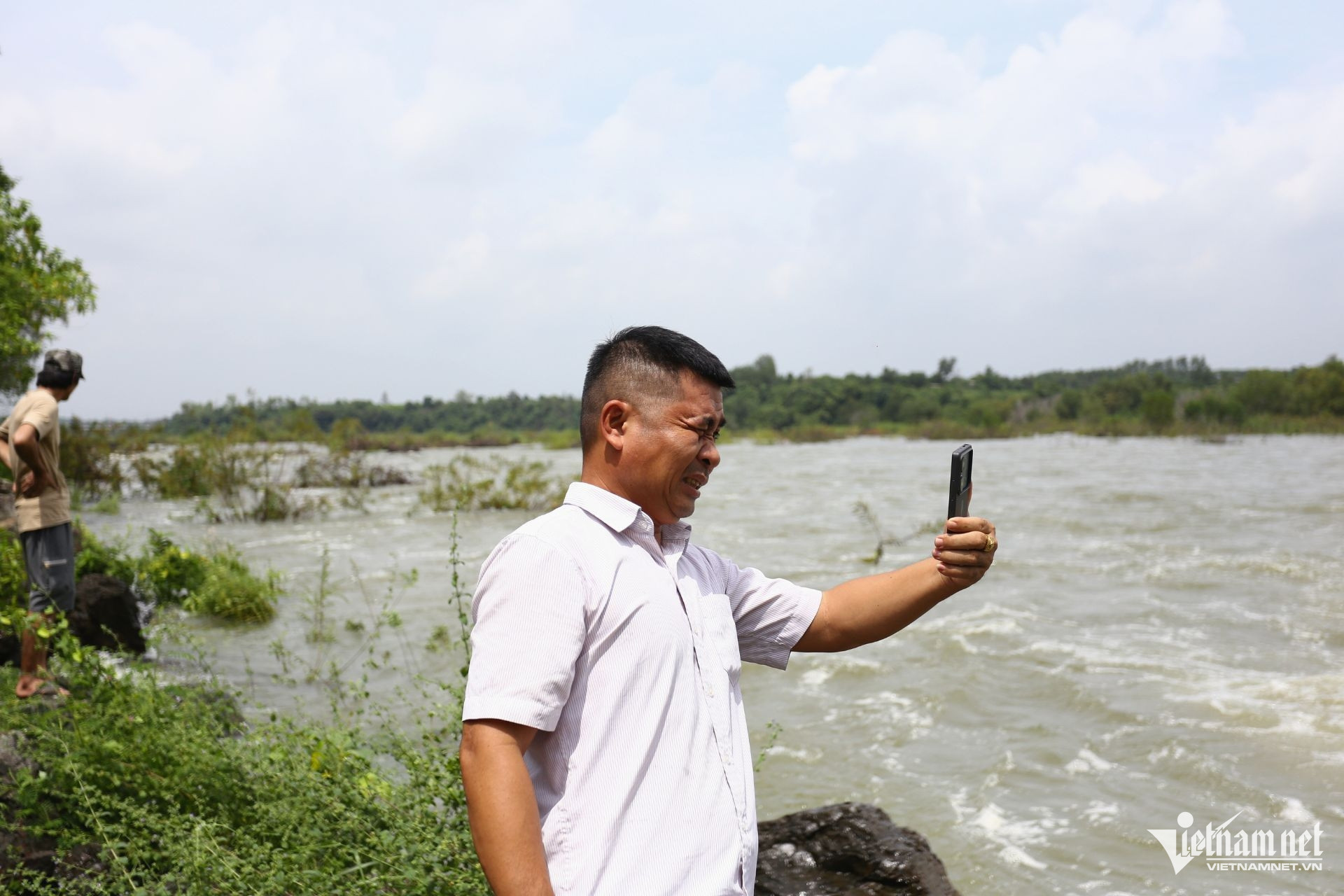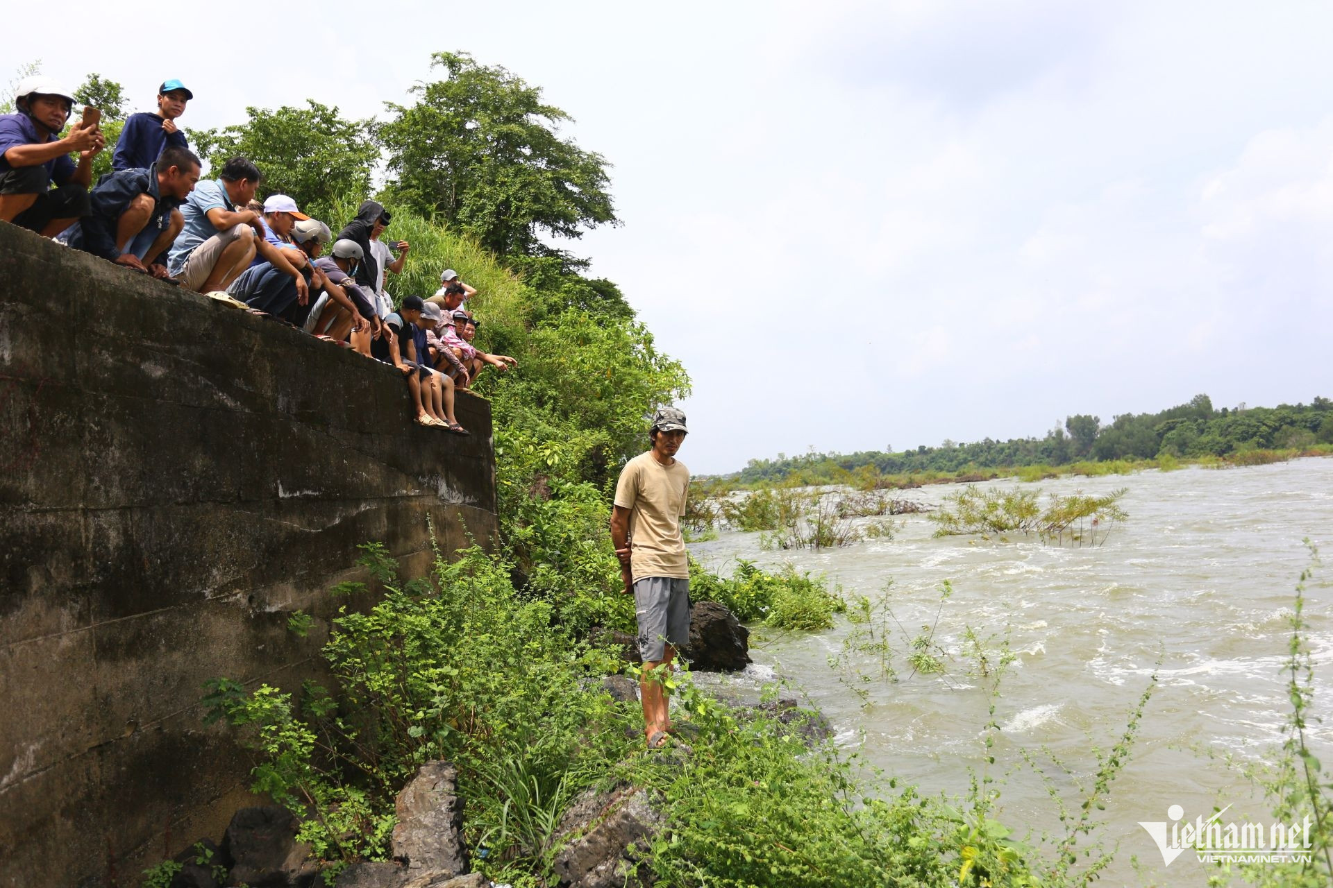 "Mình đến đây từ sớm để tận mắt để xem xả lũ, biết đâu lại bắt được con cá trôi nào", một người dân chia sẻ.