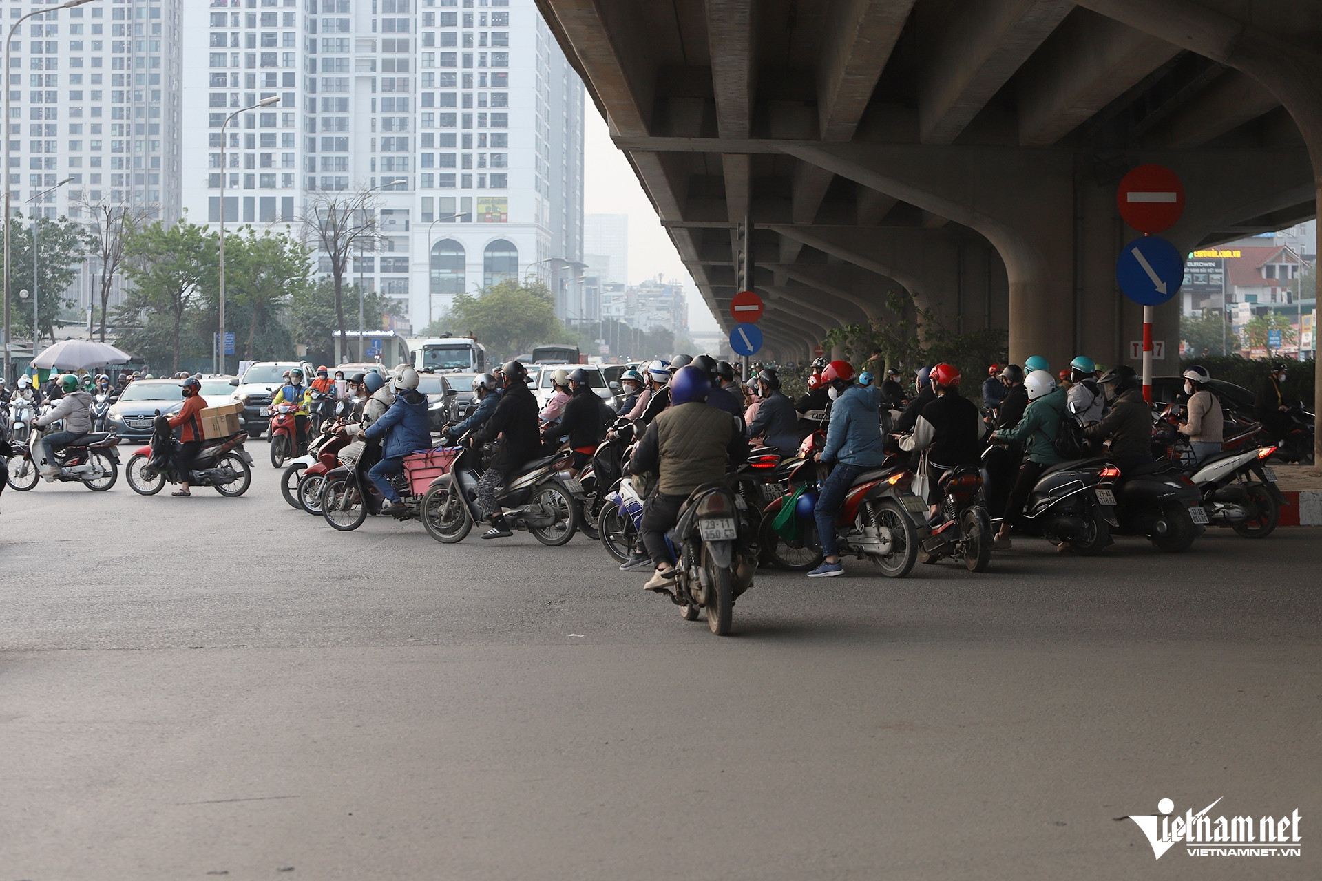 Theo đó, người điều khiển xe máy lưu thông trên đường Nghiêm Xuân Yêm, hướng đi quận Thanh Xuân muốn rẽ trái vào Phạm Tu phải dừng chờ đèn đỏ tại nút Phạm Tu - Nguyễn Xiển.