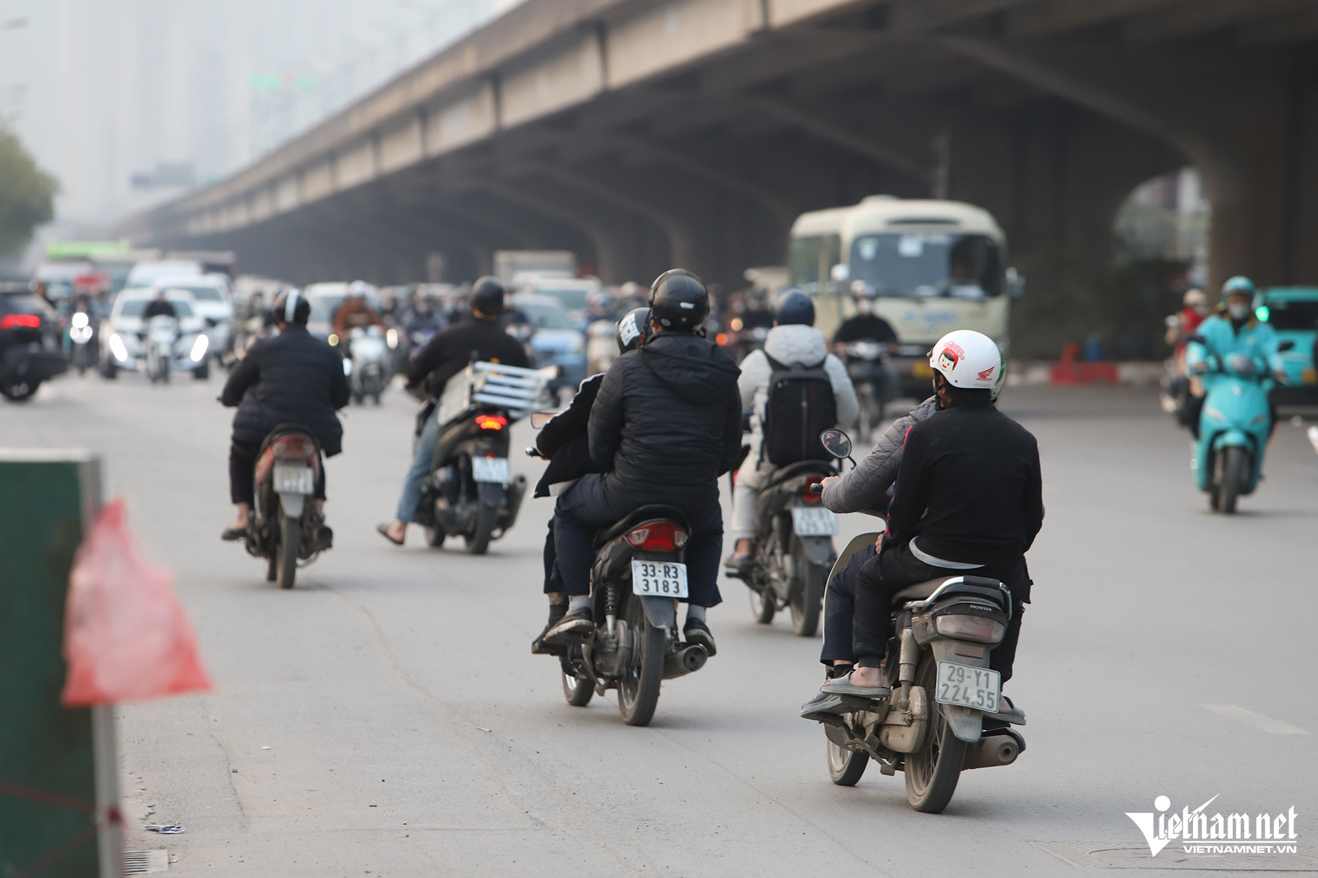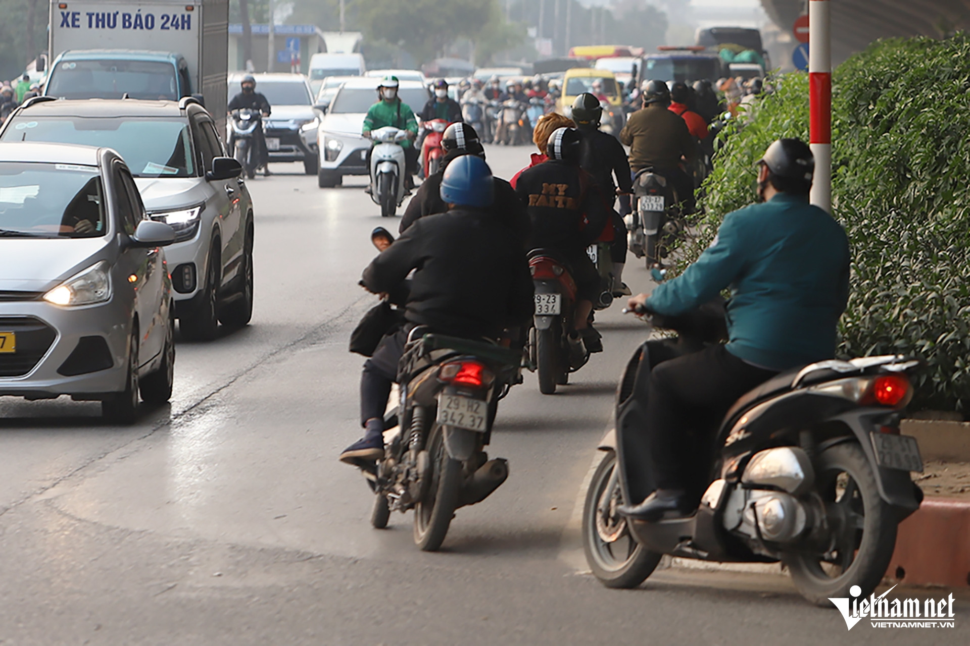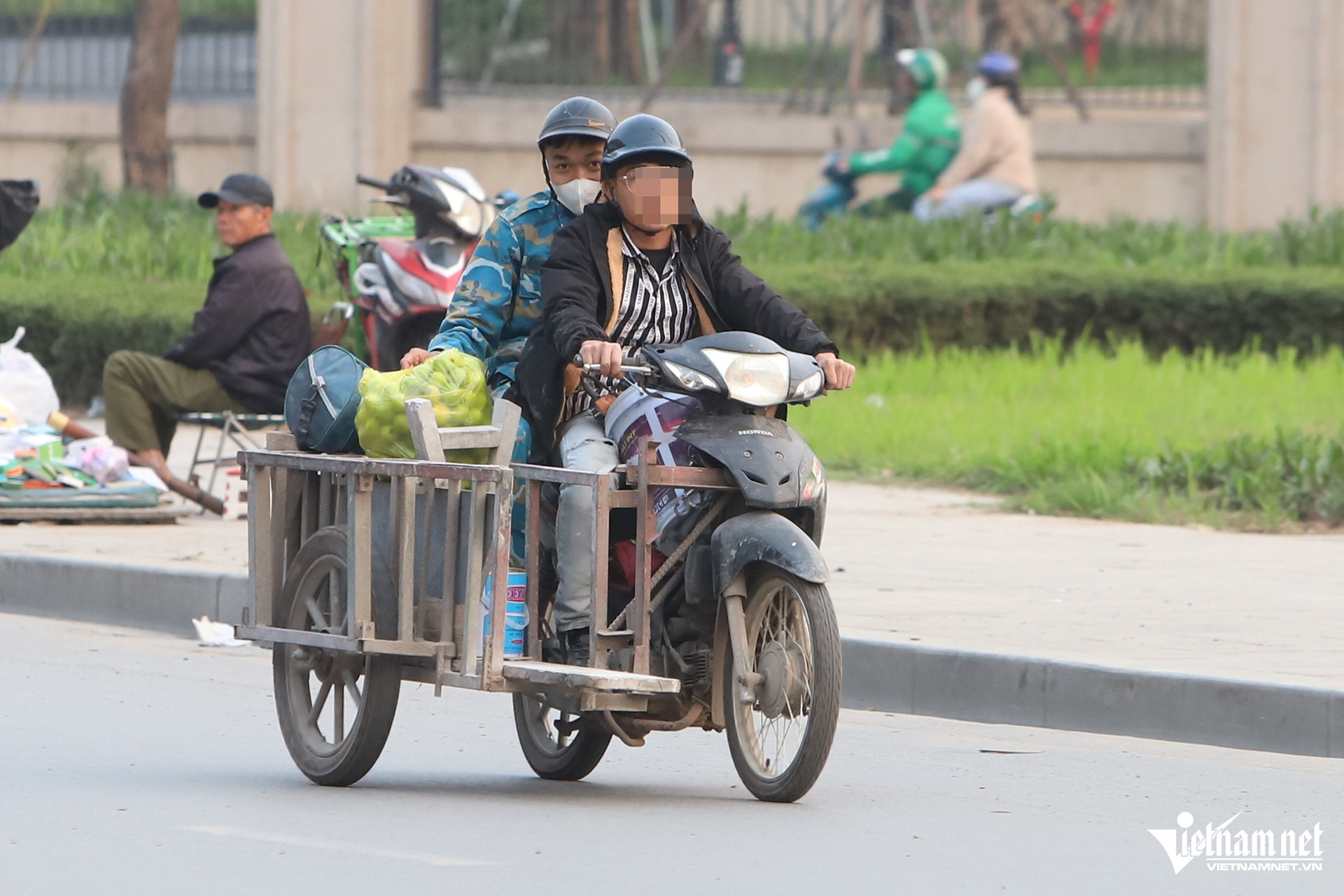 Không chỉ đi ngược chiều, nhiều người còn không đội mũ bảo hiểm hoặc chở hàng cồng kềnh.