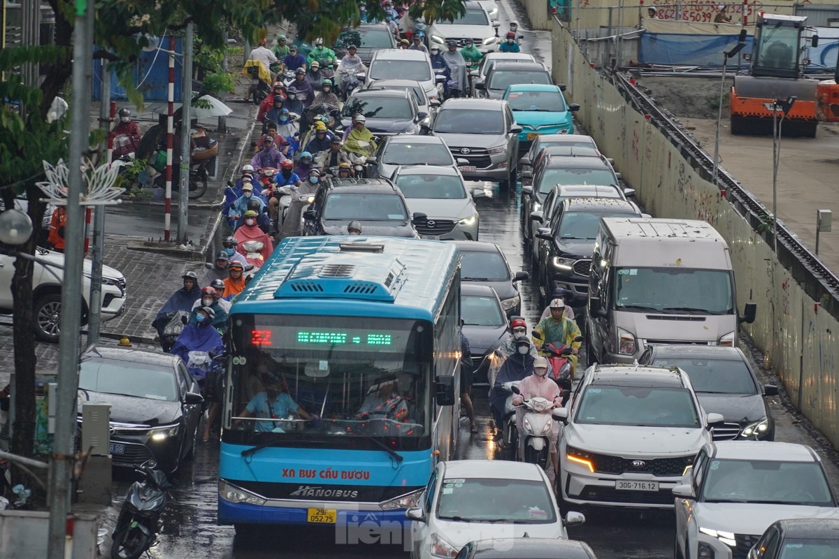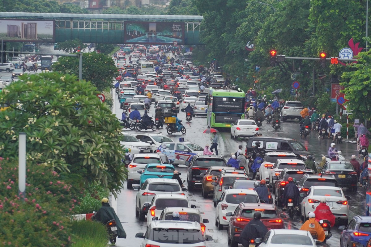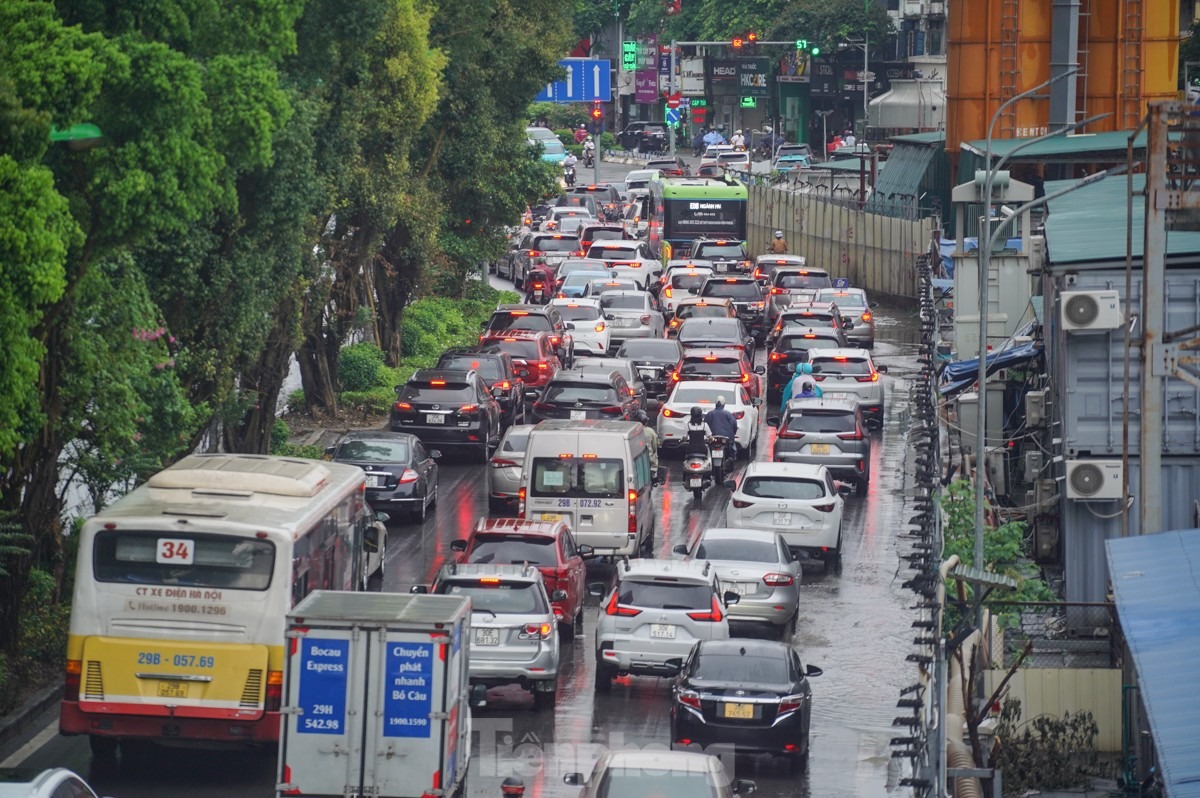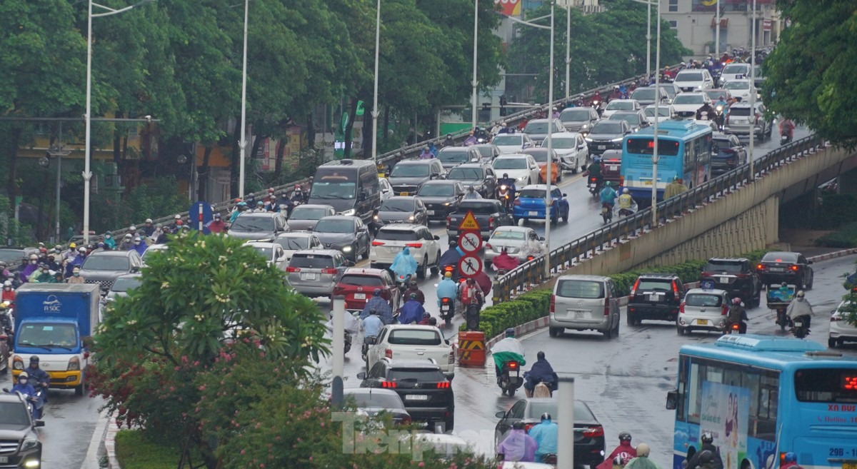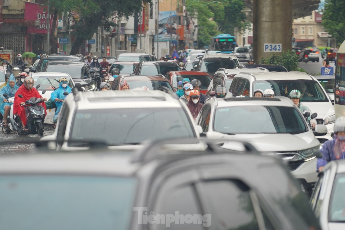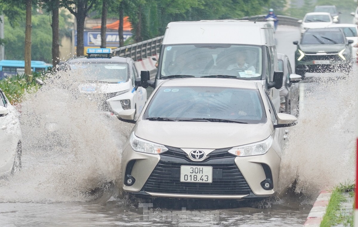 Phía trên Vành đai 2 (đoạn từ Cầu Giấy đến Võ Chí Công) cũng xảy ra tình trạng ngập úng, nước thoát chậm.