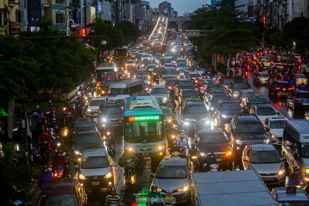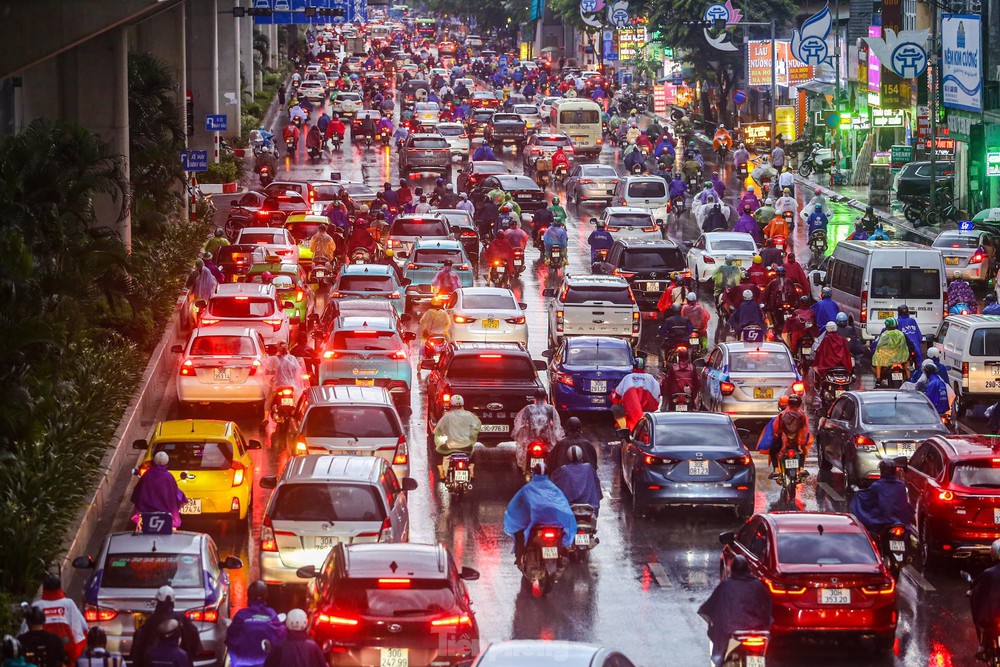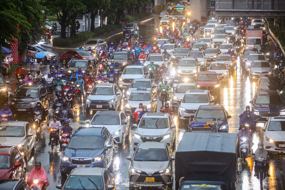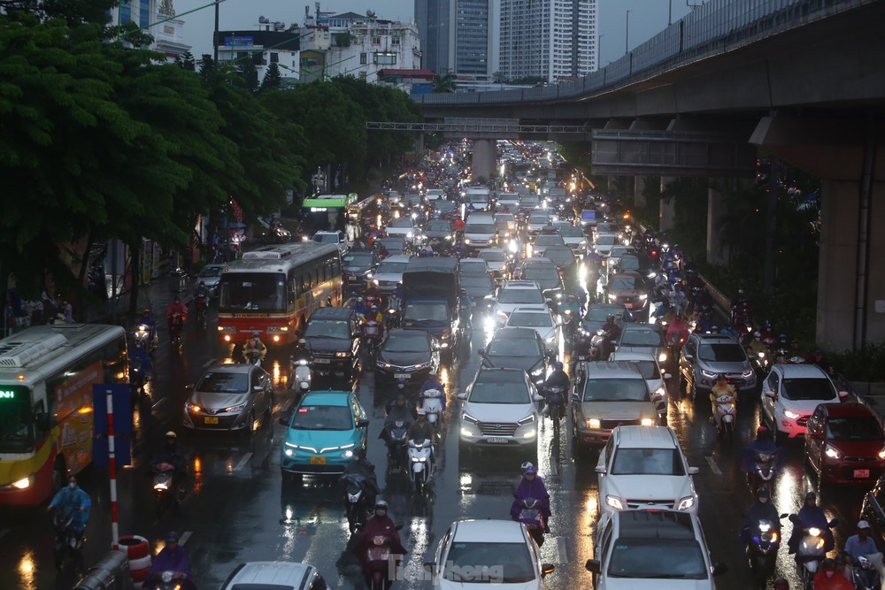 Cơn mưa dông kéo đến đúng vào giờ cao điểm chiều nay (5/7) khiến đường phố Hà Nội trở nên tắc nghẽn, người dân Thủ đô di chuyển khó khăn dưới trời mưa lớn.