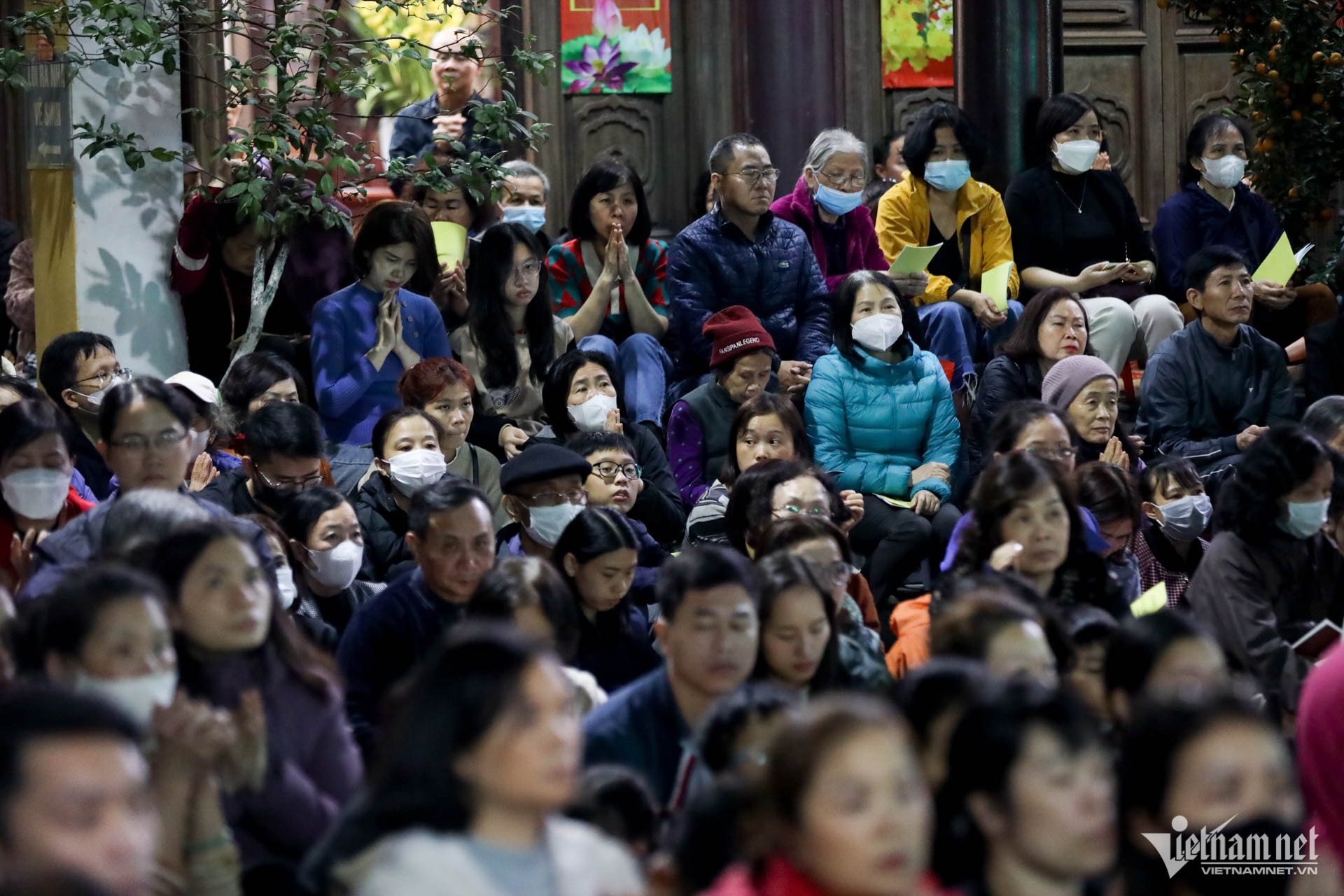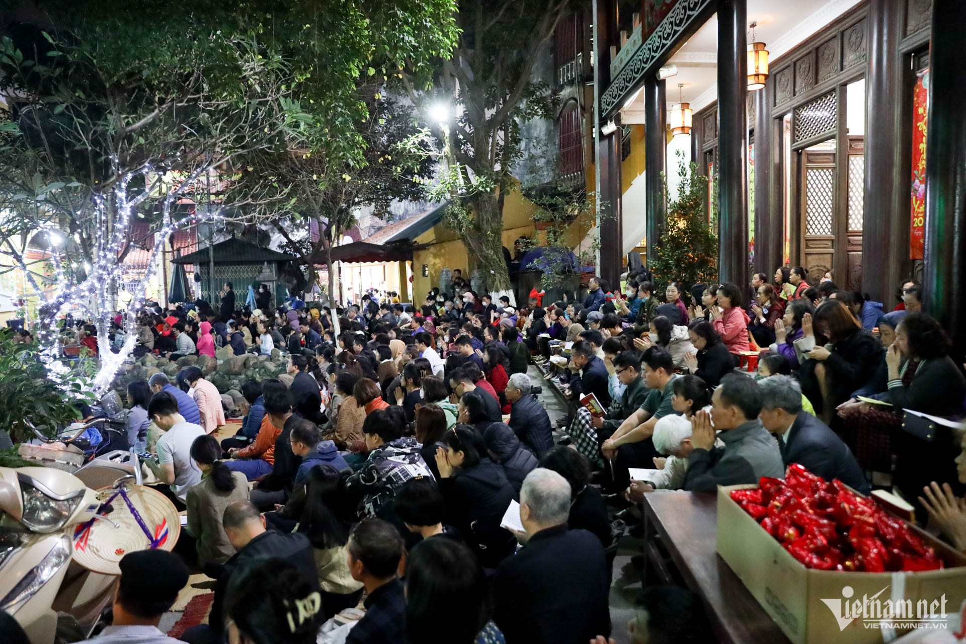 Hàng nghìn người Hà Nội đến chùa Phúc Khánh cầu an tối 17/2 (mùng 8 tháng Giêng).