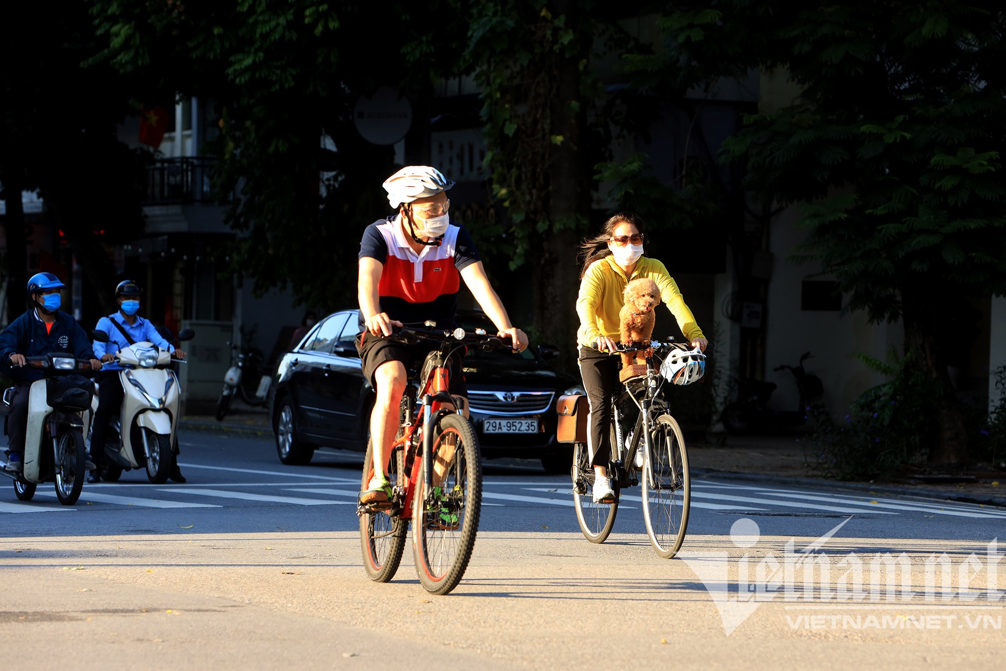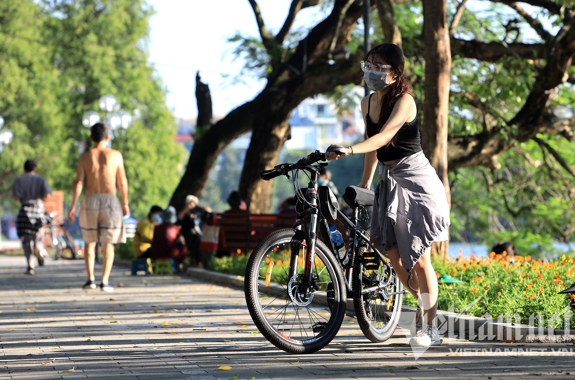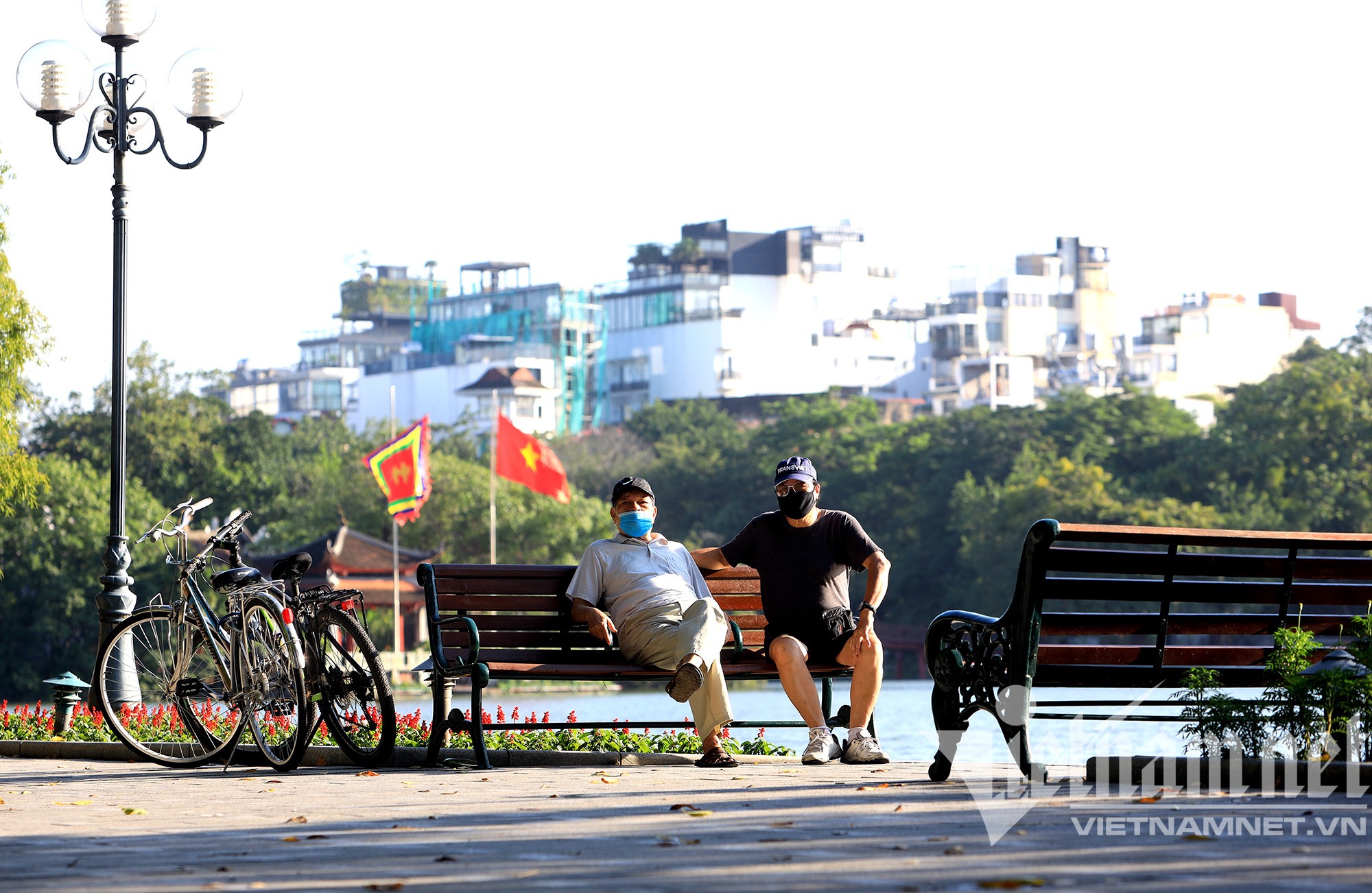 Thời tiết Hà Nội cuối thu trời se lạnh, người Hà Nội vẫn giữ thói quen thể dục sáng, tuân thủ việc đeo khẩu trang và 5k phòng, chống dịch Covid-19.