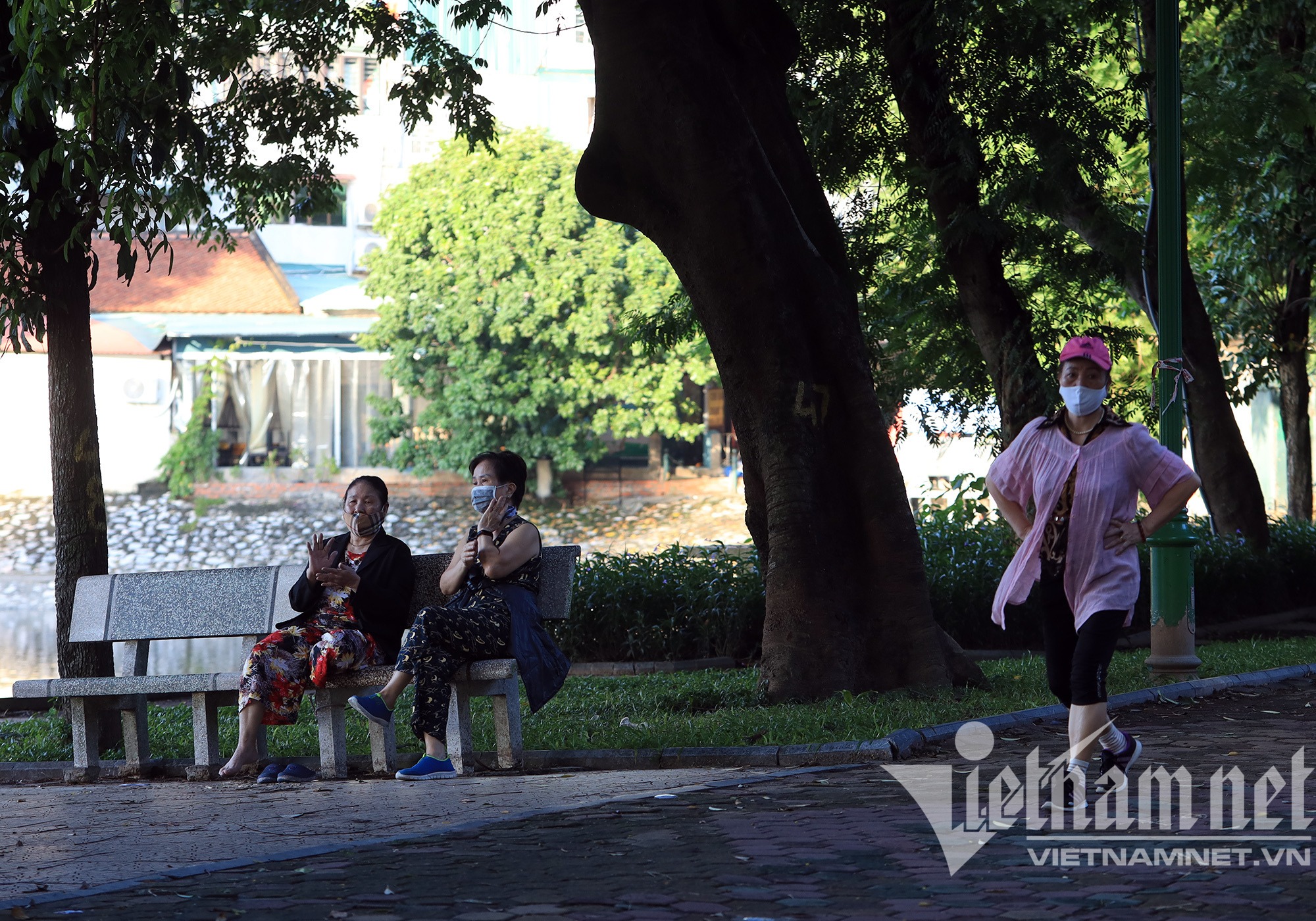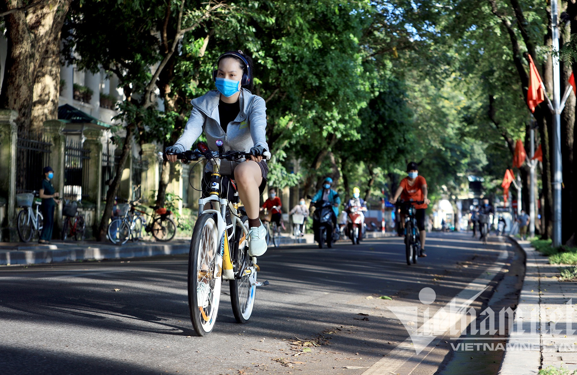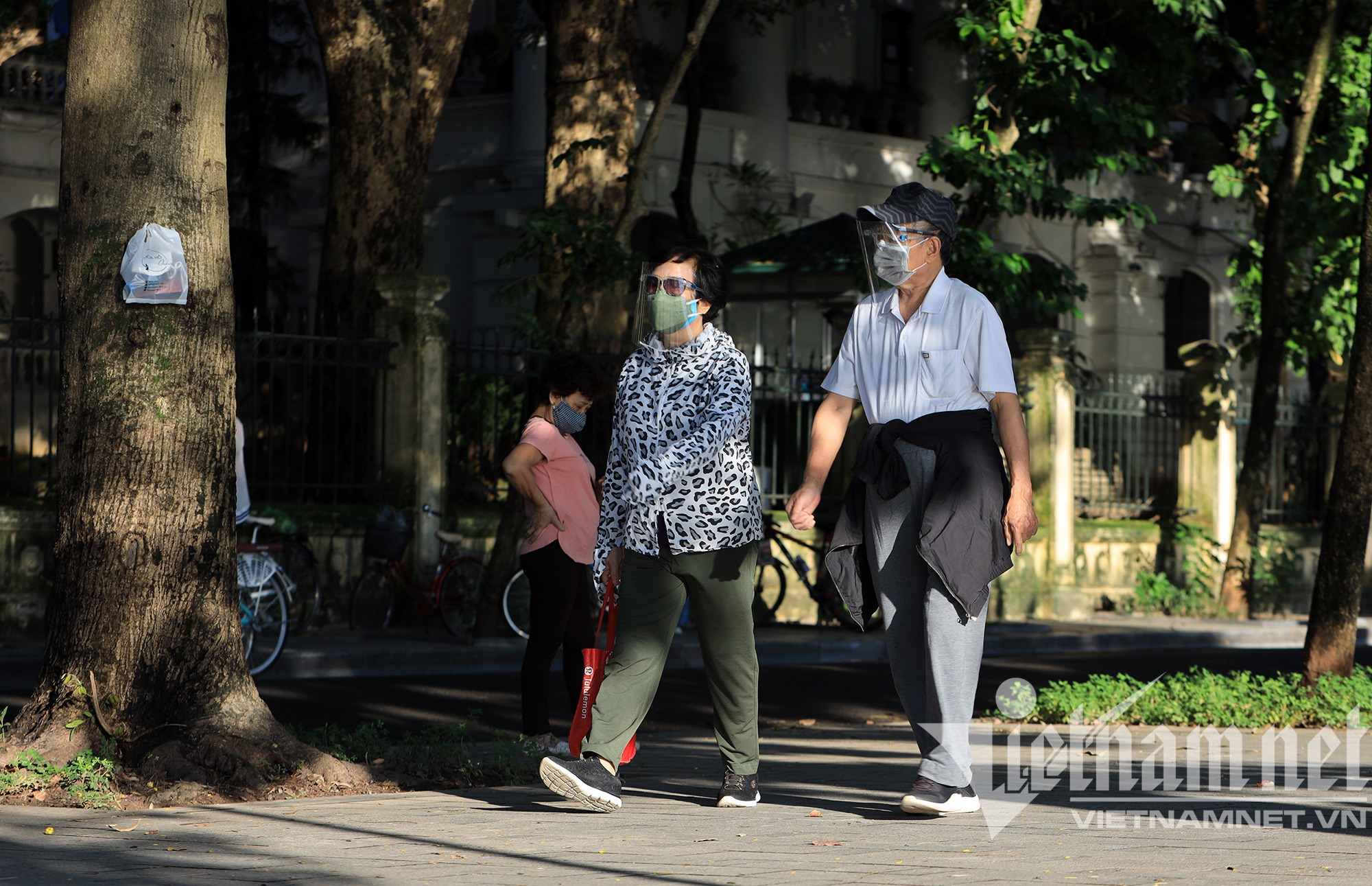 Thời tiết Hà Nội cuối thu trời se lạnh, người Hà Nội vẫn giữ thói quen thể dục sáng, tuân thủ việc đeo khẩu trang và 5k phòng, chống dịch Covid-19.