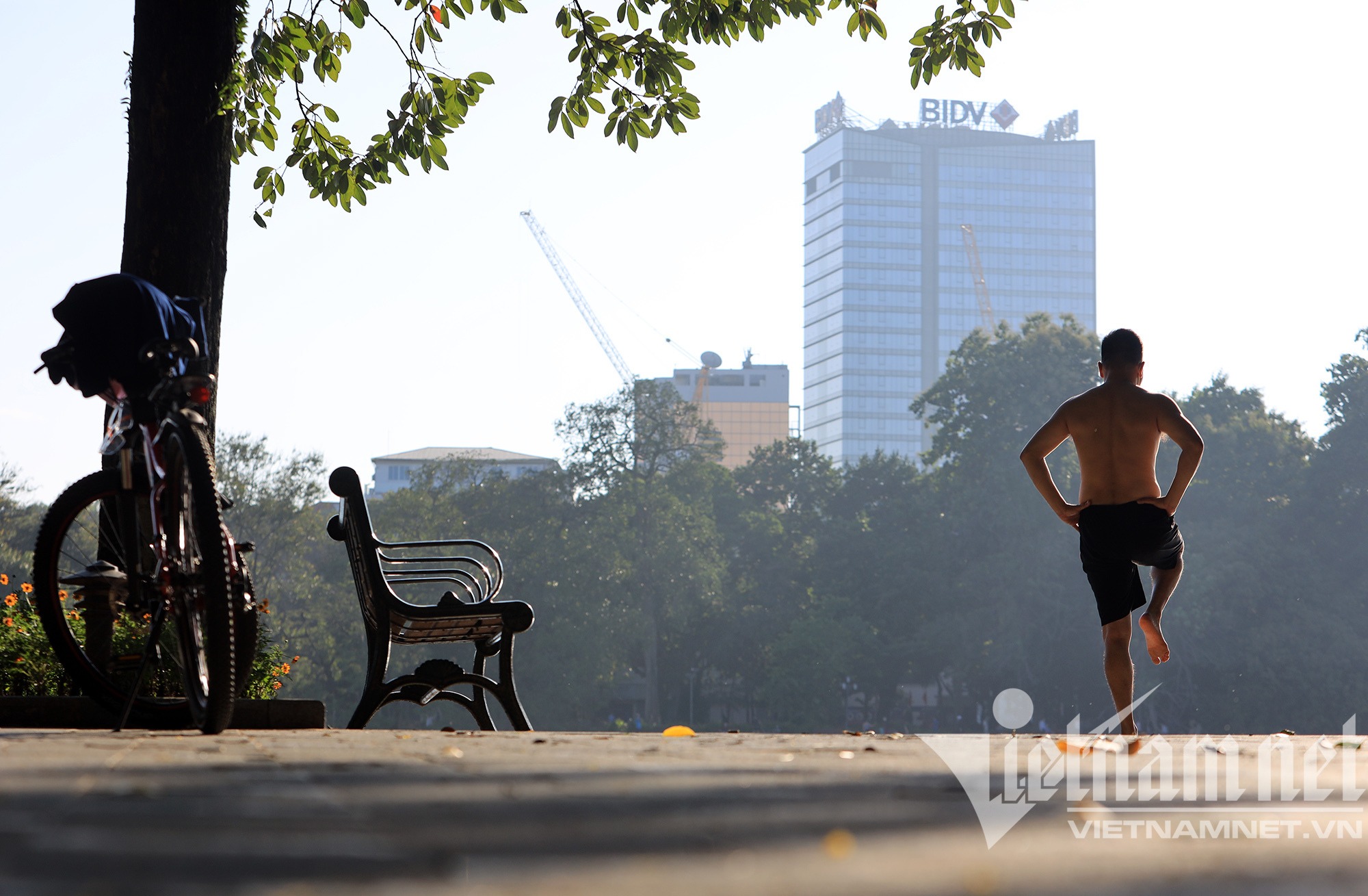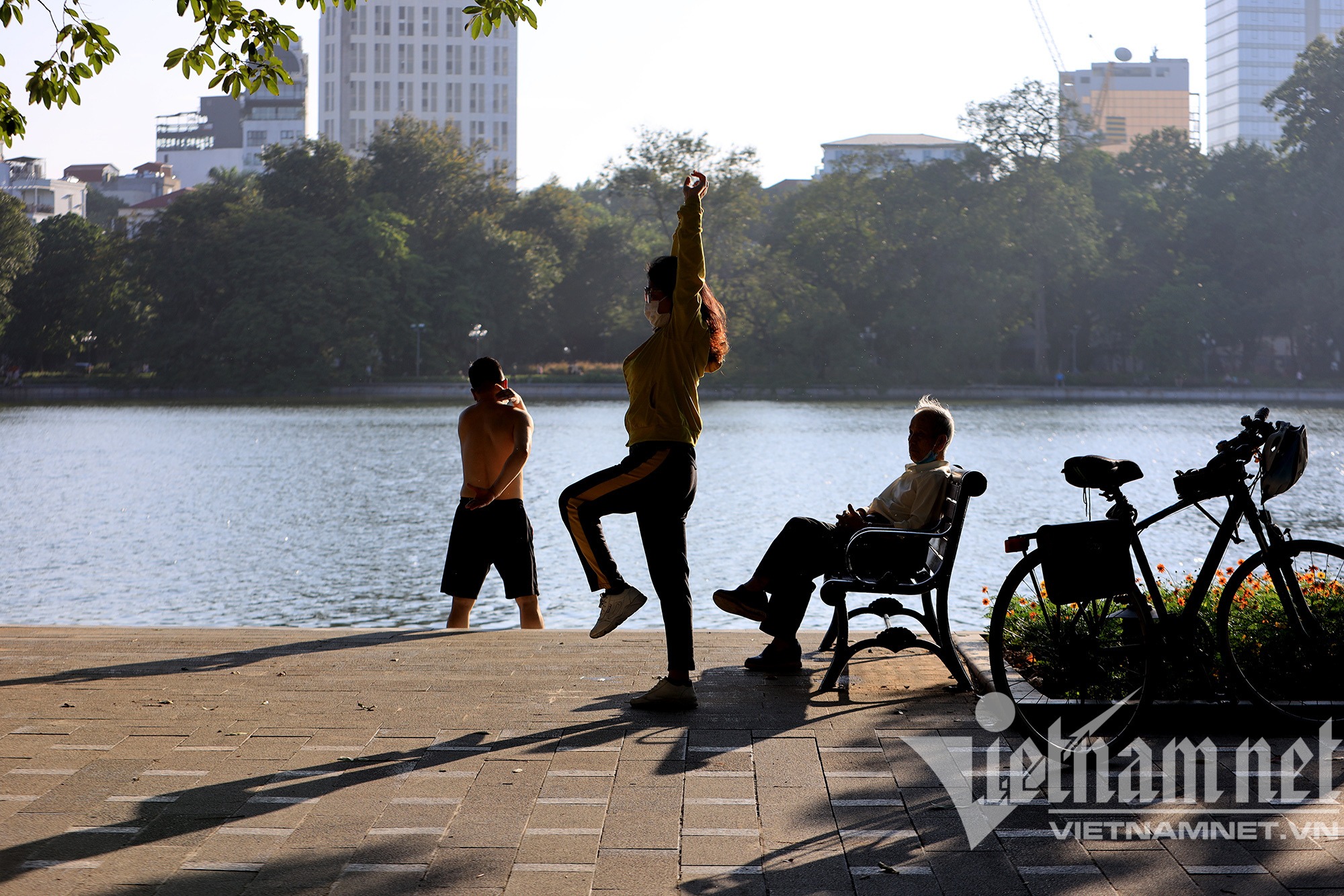 Trong thời tiết se lạnh, người dân Hà Nội đi thể dục sáng có cảm giác nhẹ nhàng, thư thái hơn, cuộc sống như trôi chậm lại.