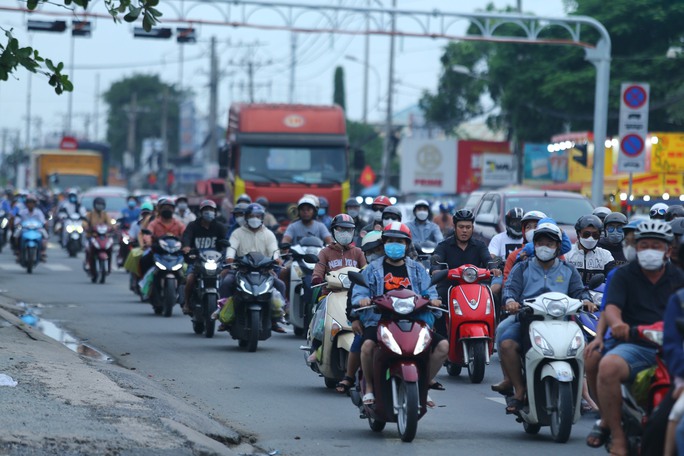 Theo ghi nhận, khoảng 17 giờ ngày 3-9, trên Quốc lộ 1 đoạn qua huyện Bình Chánh, TP HCM, lưu lượng phương tiện từ các tỉnh, thành miền Tây về TP HCM tăng đột ngột.