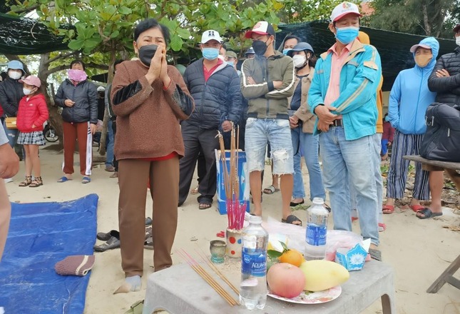Hai nạn nhân chưa được tìm thấy là N. M. Q. và N. M. A (cùng SN 2019, Hà Nội). Sáng nay người nhà của hai em đến bãi cát Cửa Đại cách khu vực xảy ra vụ lật ca nô khoảng 2 hải lý, lập bàn thờ mong sớm tìm thấy cháu.