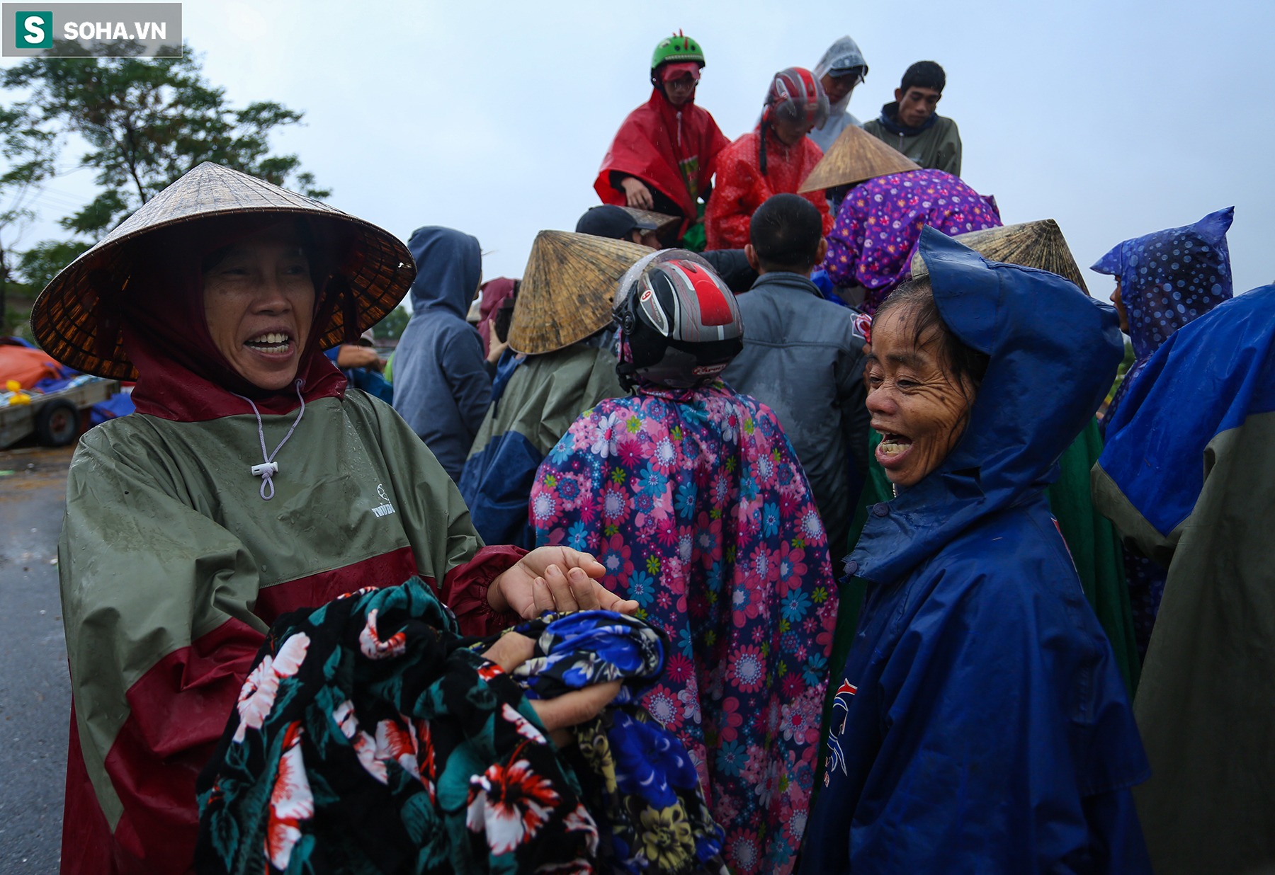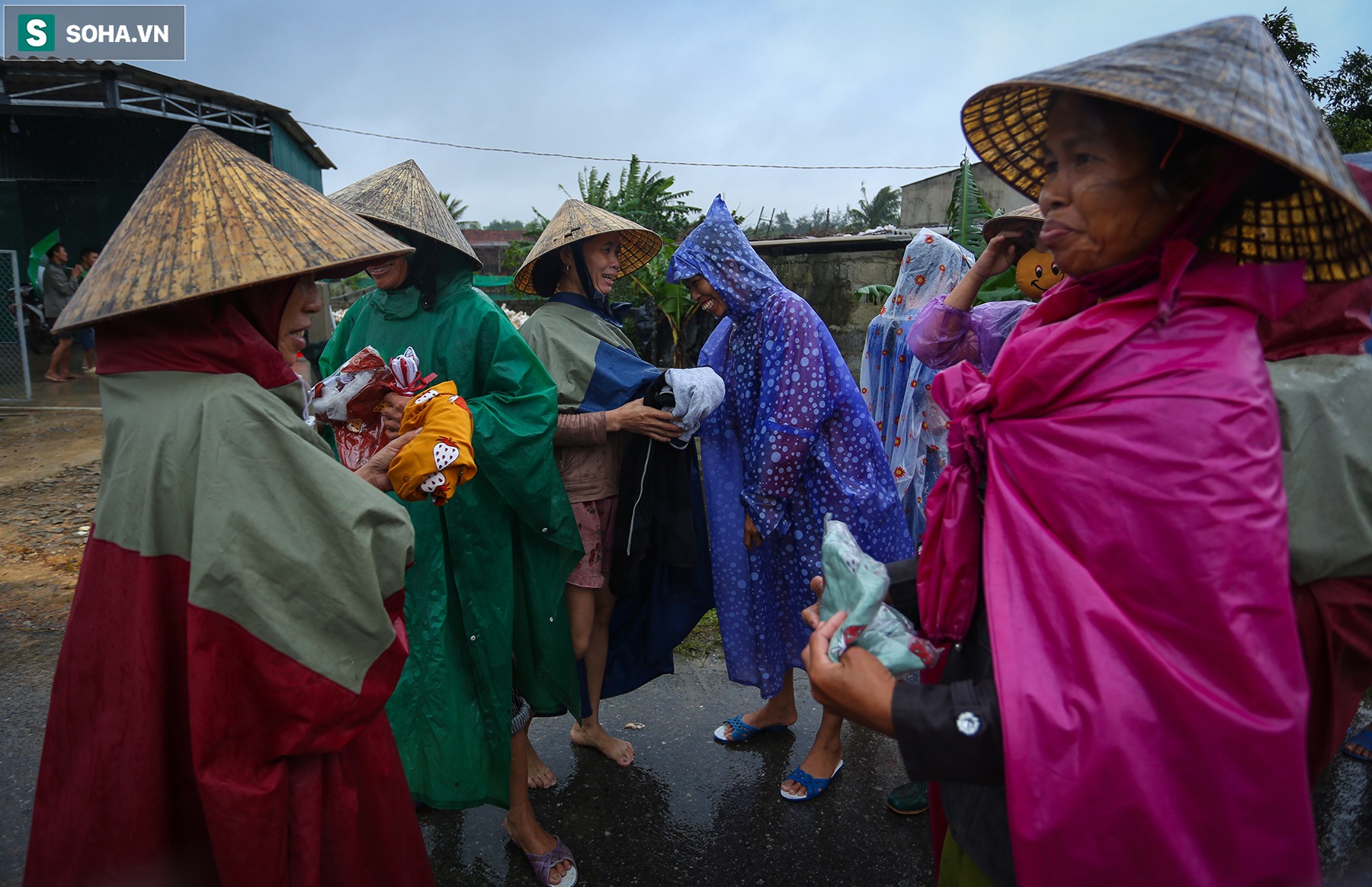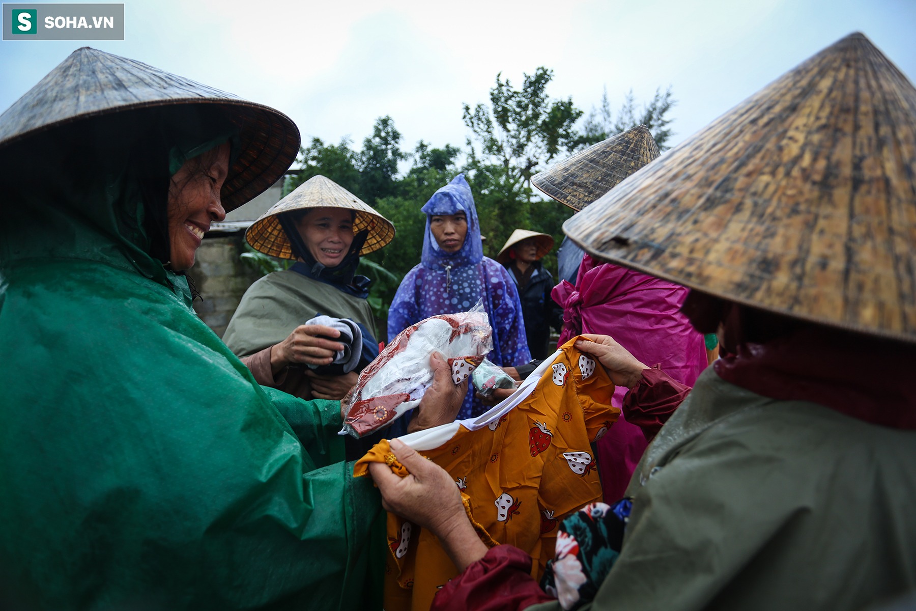 Bà con vui mừng khi nhận được đồ tiếp tế từ nhiều nơi gửi về.
