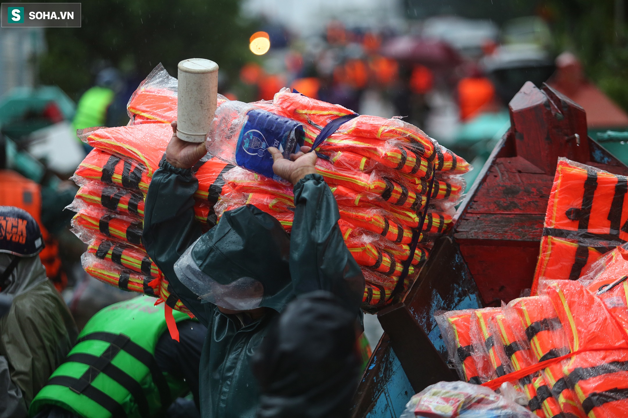 Trong lúc đi xin đồ cứu trợ, đồ ăn cho 3 con nhỏ cùng mẹ già, người phụ nữ bị lật thuyền nhưng may mắn được phát hiện và cứu hộ kịp thời.