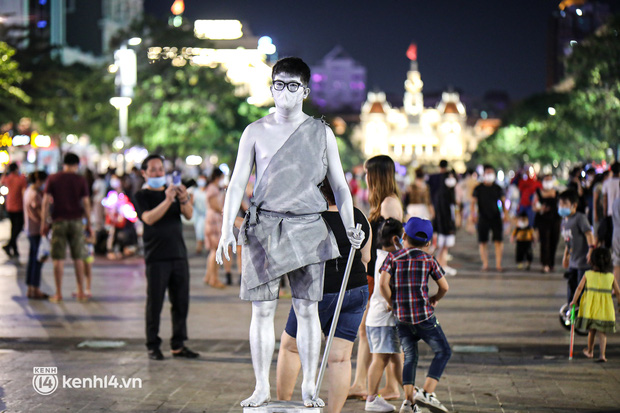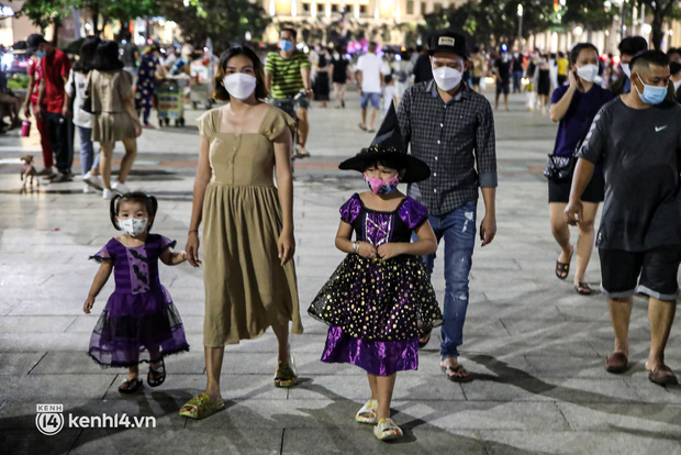 Cuối tuần đầu tiên kể từ khi Sài Gòn cho phép hàng quán phục vụ tại chỗ rơi đúng vào dịp Halloween, thời tiết lại còn mát mẻ, quá phù hợp để dân tình ùa ra đường vui chơi. Ngoài các quán xá ăn uống tấp nập thì tại các khu vực trung tâm, lượng người đi dạo phố đông đúc không kém.