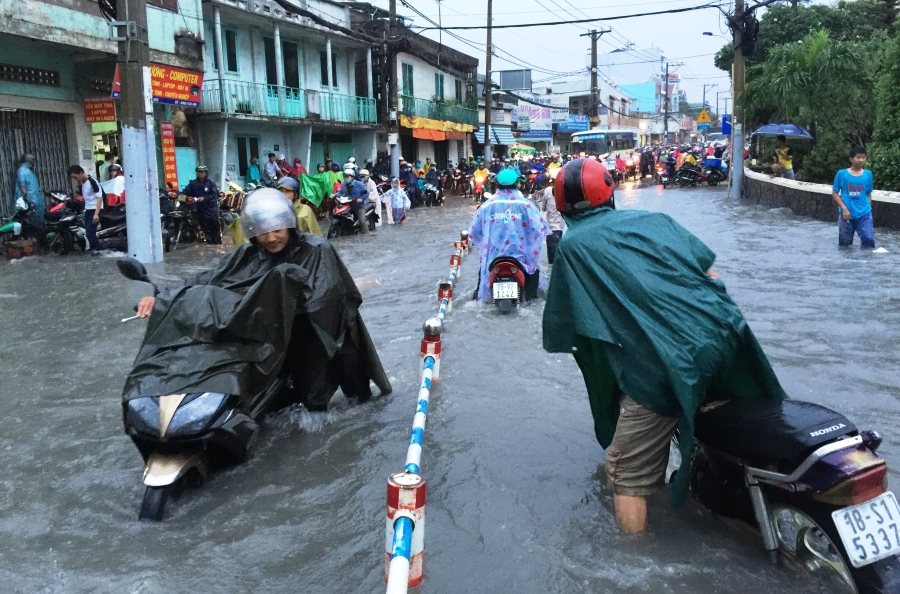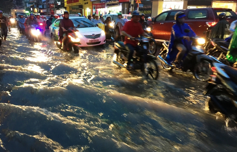 Tại nút giao Tô Ngọc Vân với đường sắt và đại lộ Phạm Văn Đồng (quận Thủ Đức), nước ngập sâu gần 1m từ đường bộ đến đường sắt khiến giao thông gần như tê liệt; hàng trăm ô tô, xe máy bì bõm lội qua vùng ngập nước trong khi trời vẫn đổ mưa như trút nước. Đường Võ Văn Ngân, tuyến đường trung tâm quận Thủ Đức nước mưa từ đầu dốc ào ào đổ xuống đã khiến nhiều người bị ngã.