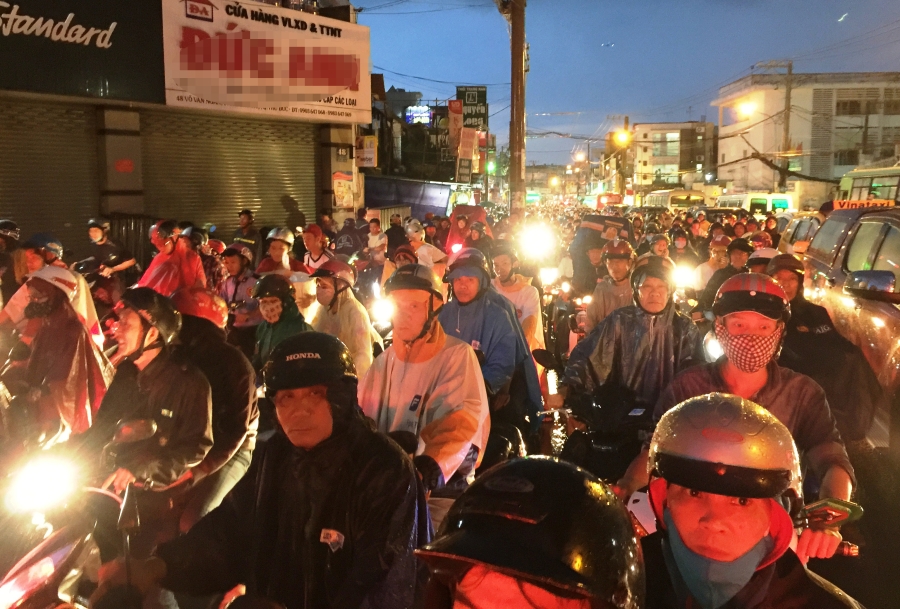 Đến gần 20h tối nay, tuyến đường Võ Văn Ngân vẫn còn ùn ứ khá nghiêm trọng. Người dân hết sức khổ sở, dầm mình trong mưa tìm lối thoát để trở về nhà.
