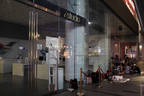 Gian hàng iStudio trên đường Orchard chưa có bất kỳ biển hiệu quảng cáo nào cho smartphone mới của Apple. Tuy nhiên, nhóm những khách hàng đến đầu tiên đã có mặt từ 12h trưa, trong đó bốn vị trí đầu thuộc về người Thái Lan, gần 20 người Việt xếp sau. |