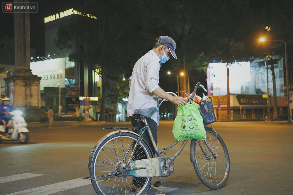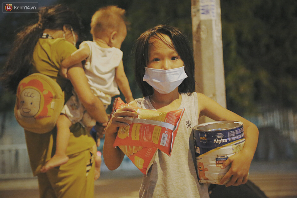 Cầm phần quà nhỏ được nhóm "Sài Gòn đêm" hỗ trợ, chú Cát (50 tuổi) rưng rưng nước mắt. "Cảm ơn tụi con nhiều lắm, giờ chú thất nghiệp, chẳng biết mấy ngày nữa sống sao".
