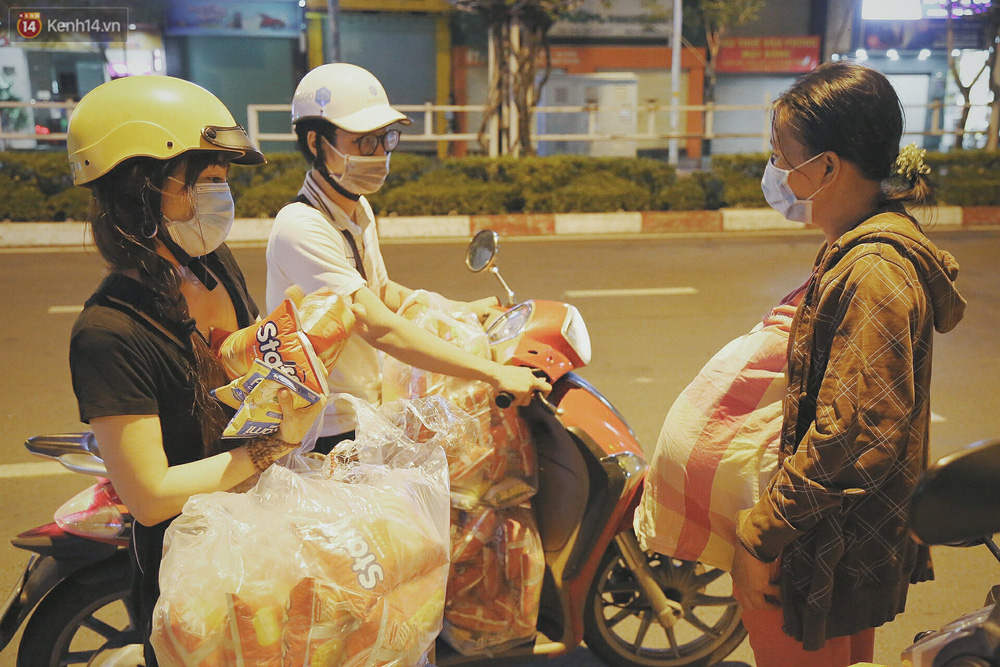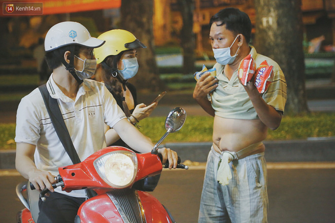 "Mấy hôm trước, nhóm tụi mình đi mỗi khu vực đông hơn, giờ thì chia nhỏ ra, chỉ có 2 người di chuyển ở một địa điểm để tuân thủ quy định giãn cách. Dù biết dịch bệnh căng thẳng nhưng nhìn những người lao động nghèo, vô gia cư lay lắt chờ hỗ trợ, tụi mình không thể không đi", Thành tâm sự.