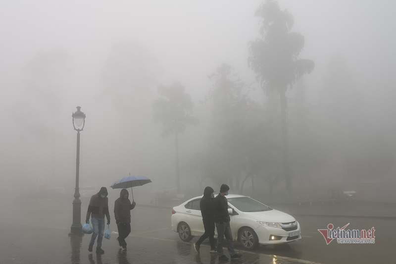 Quảng trường trung tâm của thị trấn Sa Pa là một khoảng mênh mông sương, không một bóng người. Những chiếc xe chậm chạp di chuyển, phải bật đèn sương mù để cảnh báo các xe đi ngược chiều.