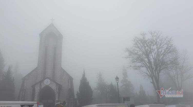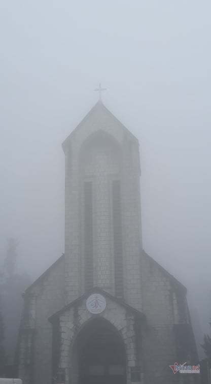 Nhà thờ cổ Sa Pa chìm trong màn sương mờ ảo. Những cây sa mu cổ thụ chỉ còn là những nét sẫm màu trong sương giá. Những tốp người thưa thớt di chuyển trong cái lạnh 0 độ. Một Sa Pa huyền ảo, chìm đắm trong sương.