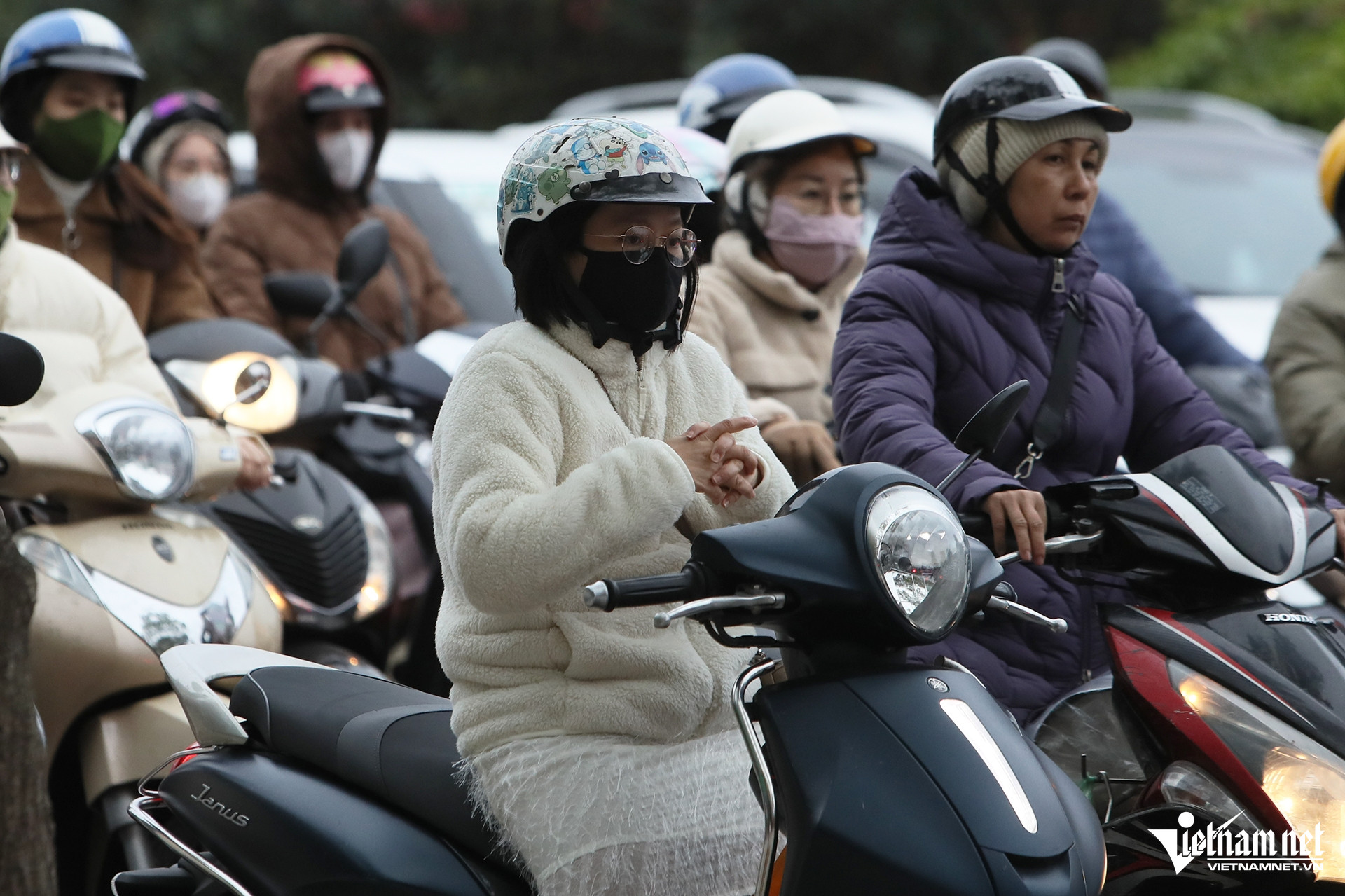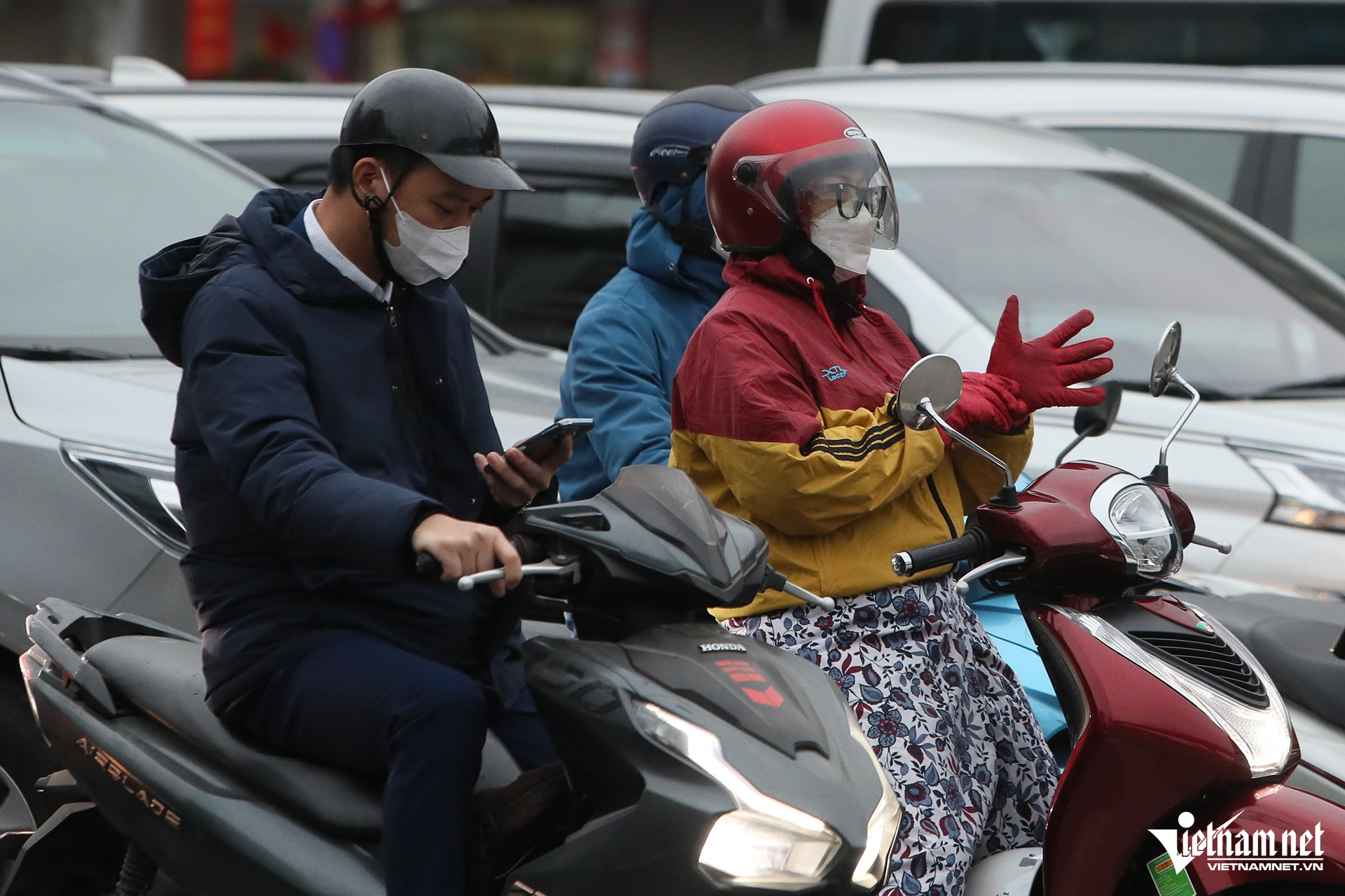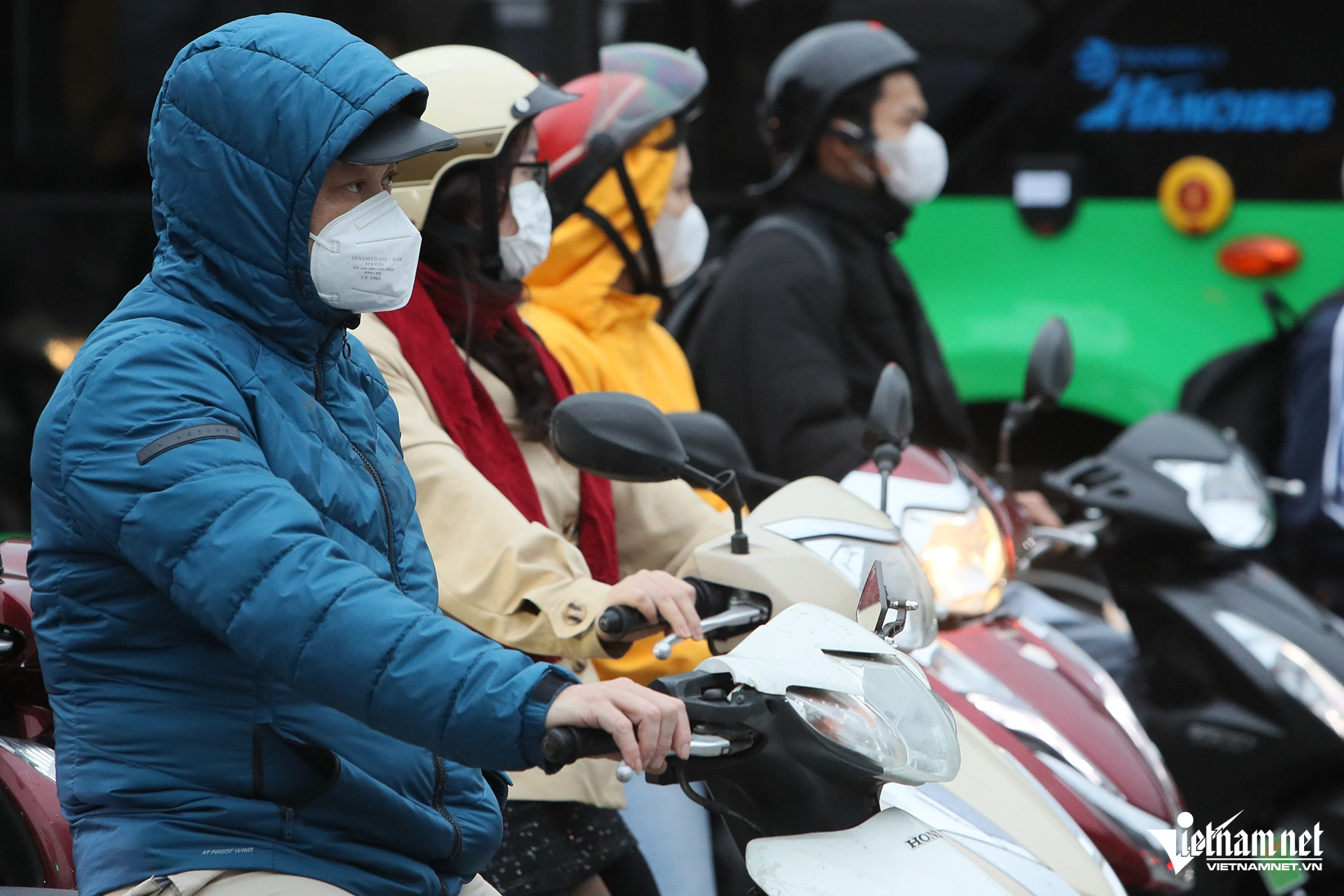 Sáng nay, khối không khí lạnh ảnh hưởng đến Bắc Bộ khiến nền nhiệt tại Hà Nội giảm sâu. Nhiều người tham gia giao thông co ro trong ngày đầu đi làm sau kỳ nghỉ Tết Nguyên đán Ất Tỵ.