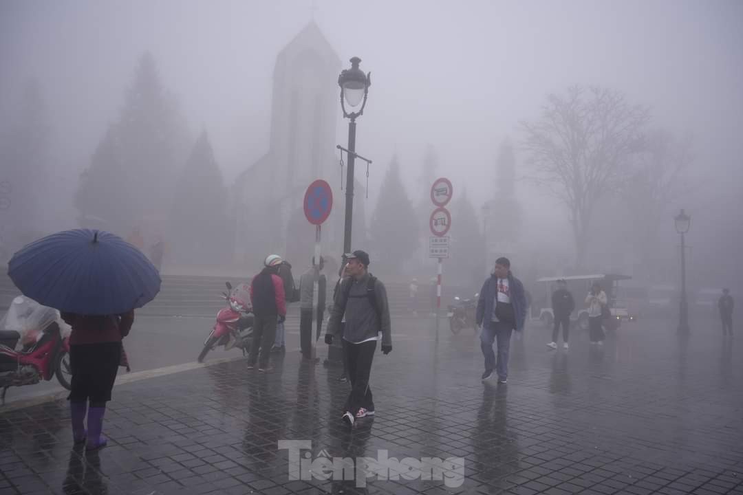 Chiều 17/12, nhiệt độ ghi nhận trên đỉnh Fansipan chỉ 2 độ C. Tại trung tâm thị xã Sa Pa, nhiệt độ dưới 10 độ C.
