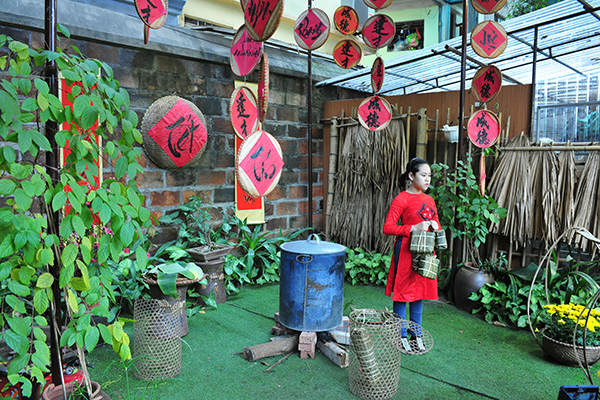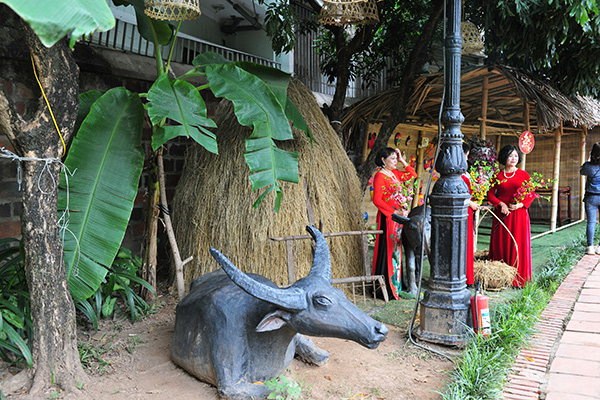 Tại Hội chữ Xuân năm nay, khách tham quan rất thích thú với những hình ảnh làng quê bắc bộ truyền thống được tái hiện lại quanh khu vực hồ Văn.