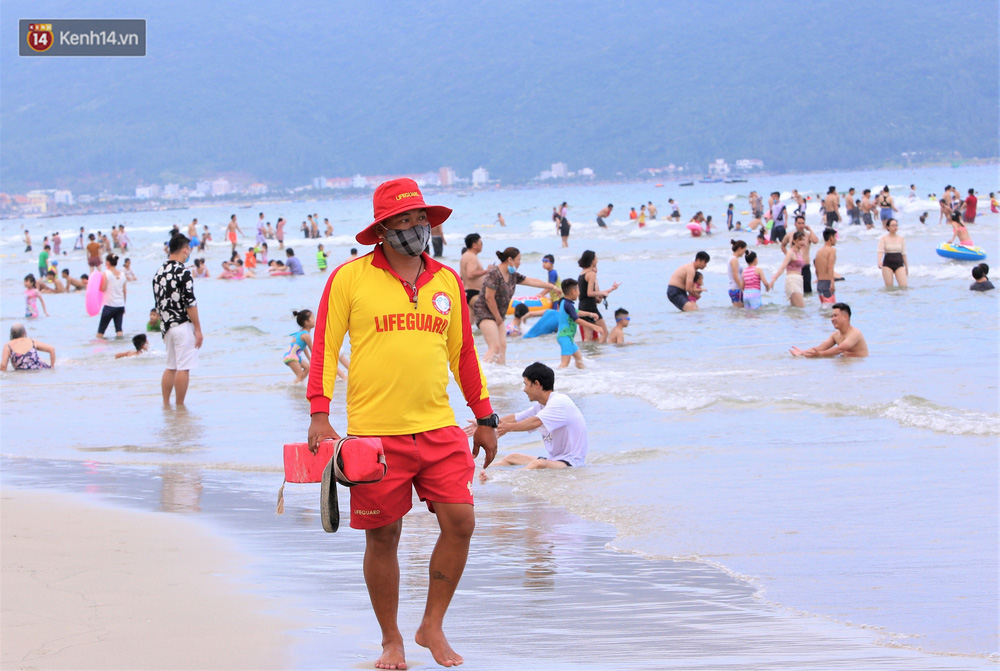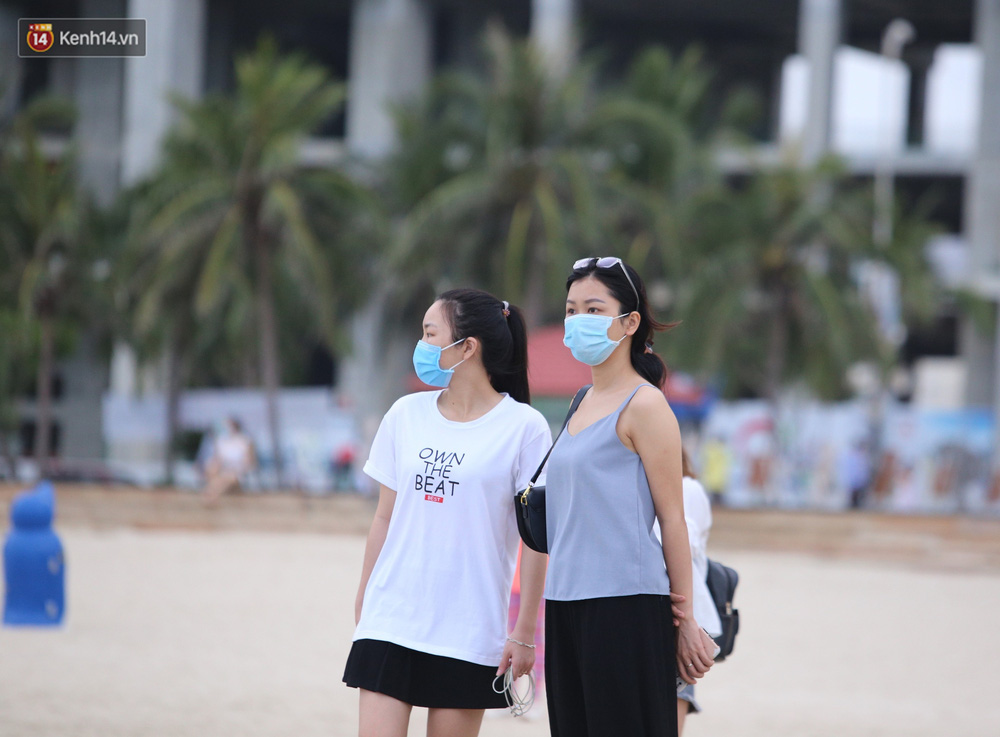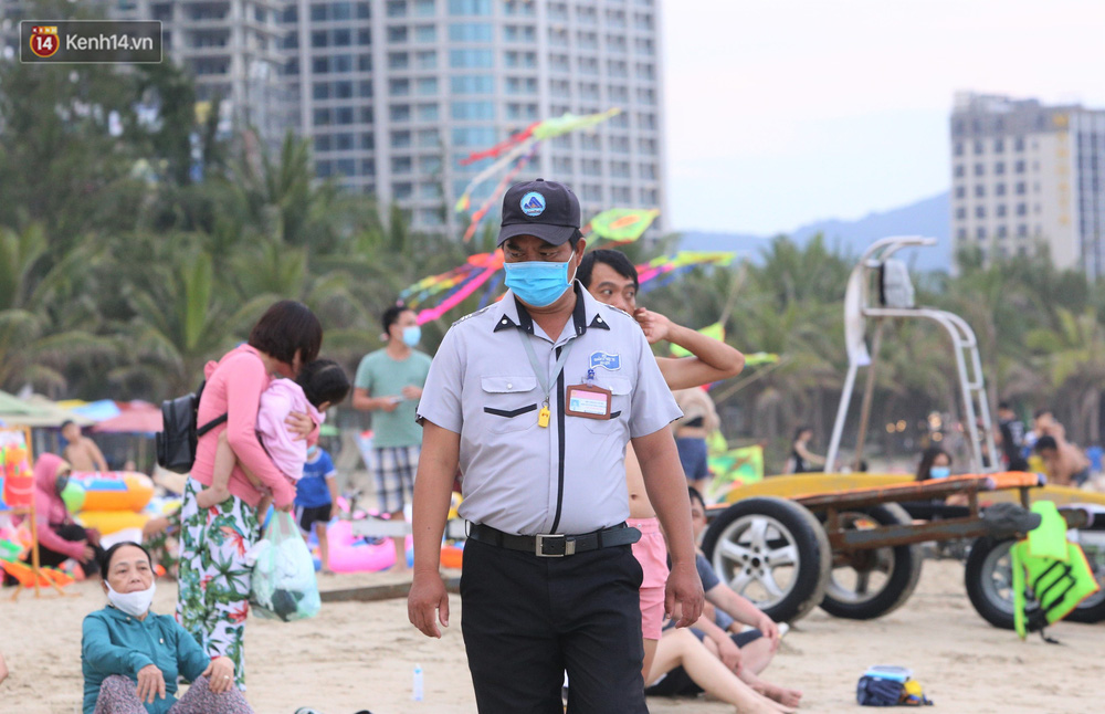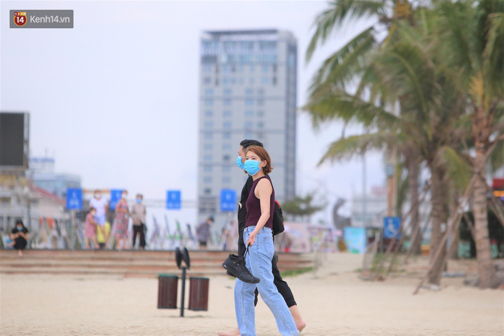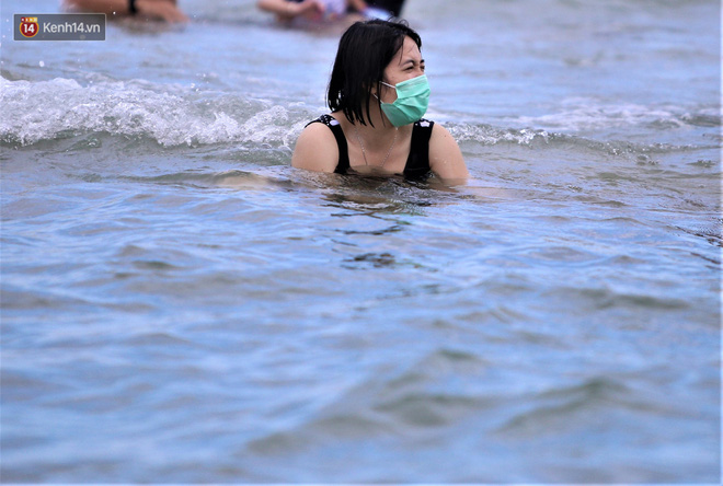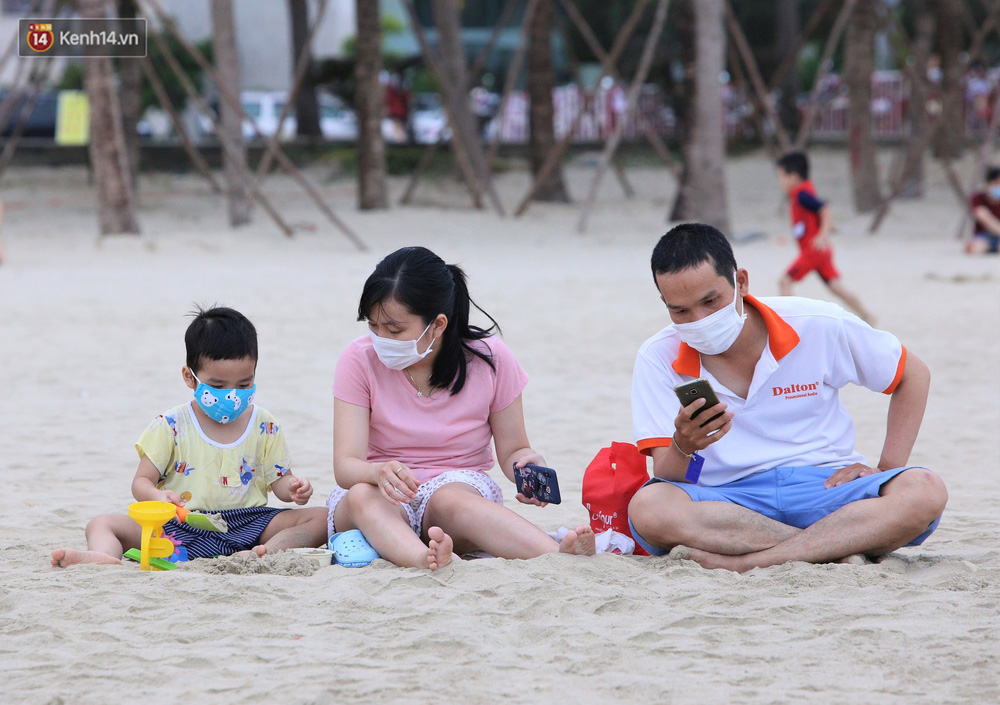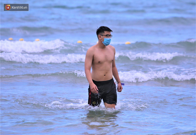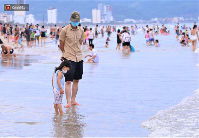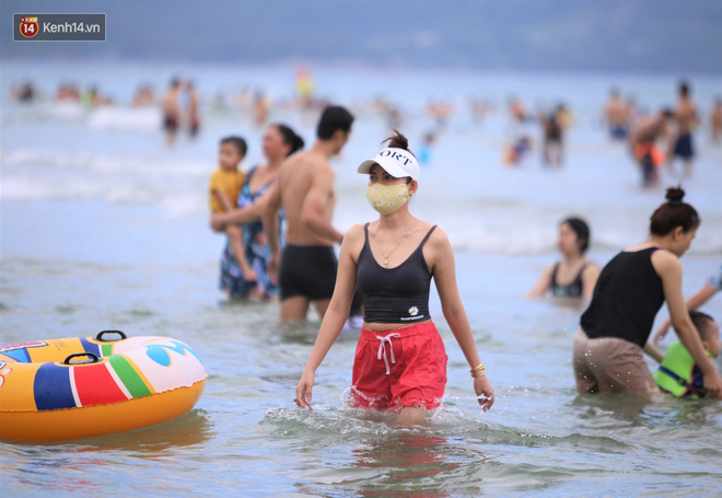 Trong những ngày lễ vừa qua, nhiều người dân và du khách đến tắm biển ở Đà Nẵng đã ý thức đeo khẩu trang để phòng, chống dịch Covid-19.