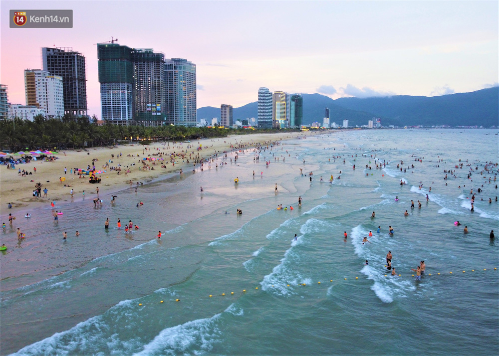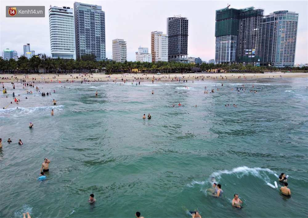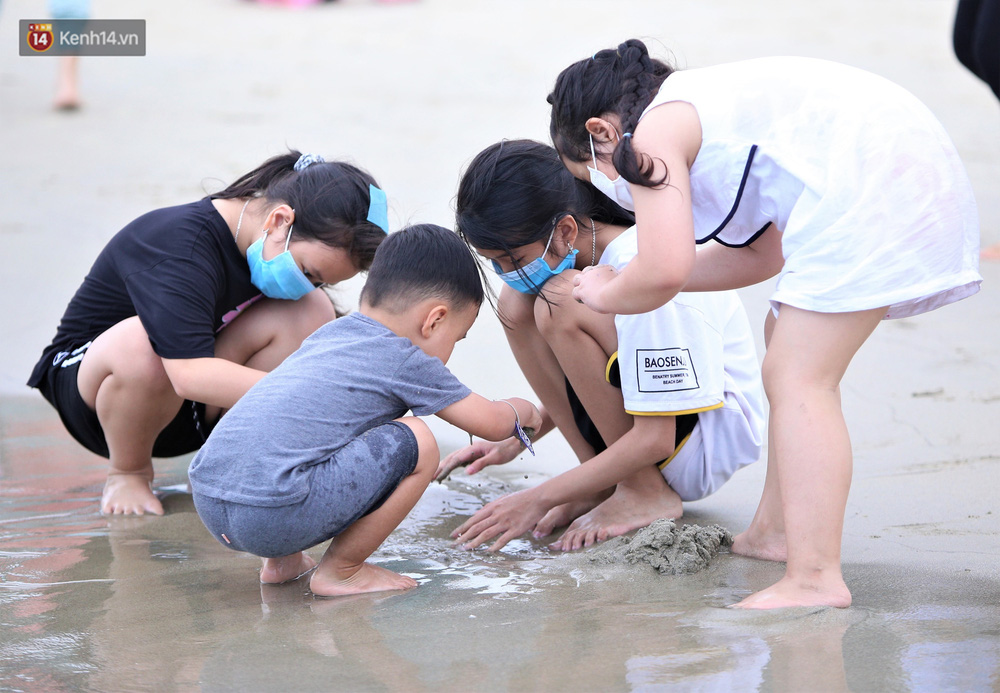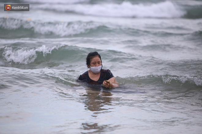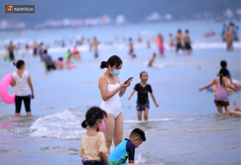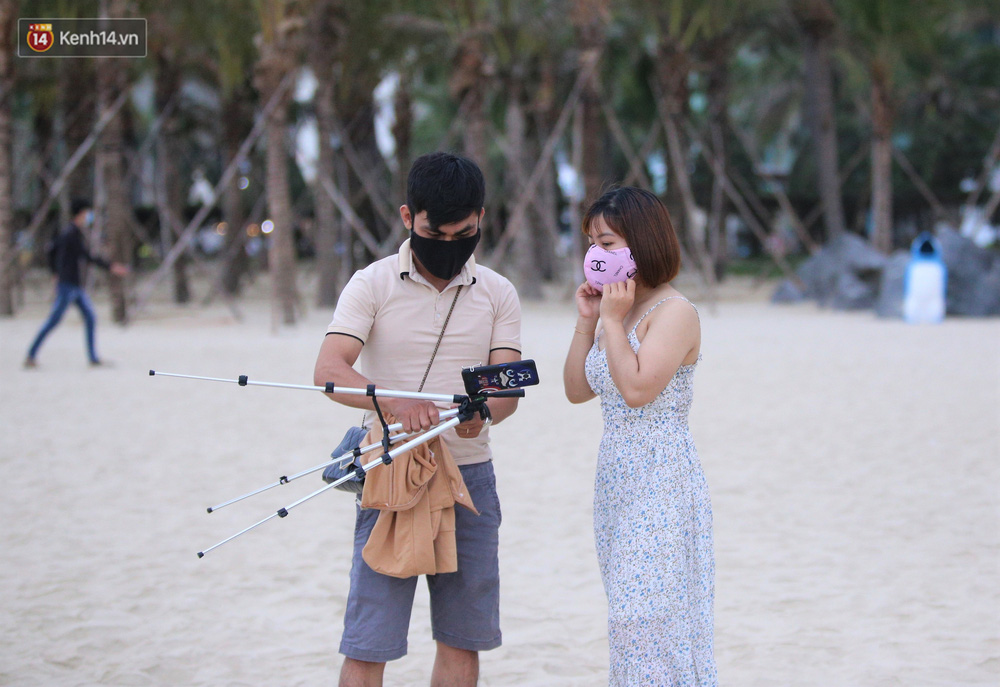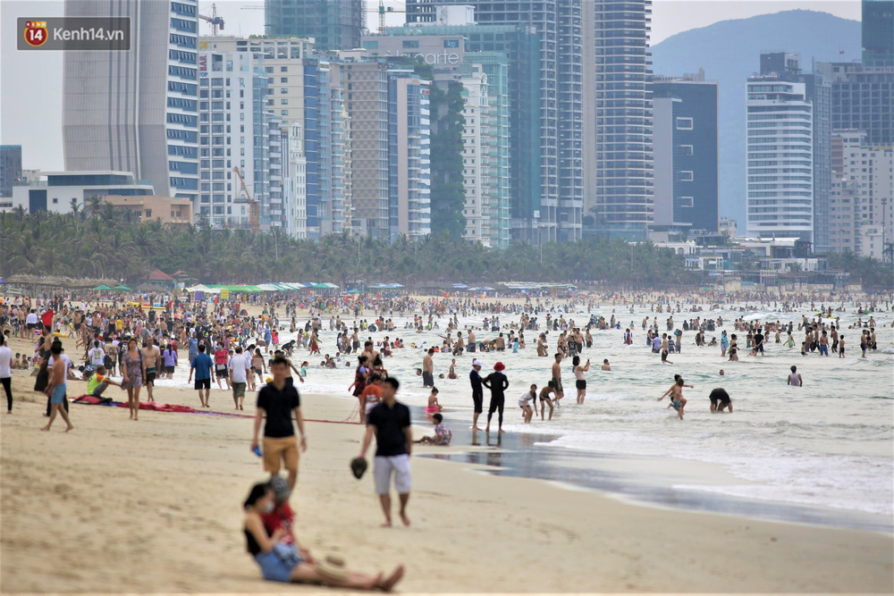 Trong những ngày lễ vừa qua, nhiều người dân và du khách đến tắm biển ở Đà Nẵng đã ý thức đeo khẩu trang để phòng, chống dịch Covid-19.