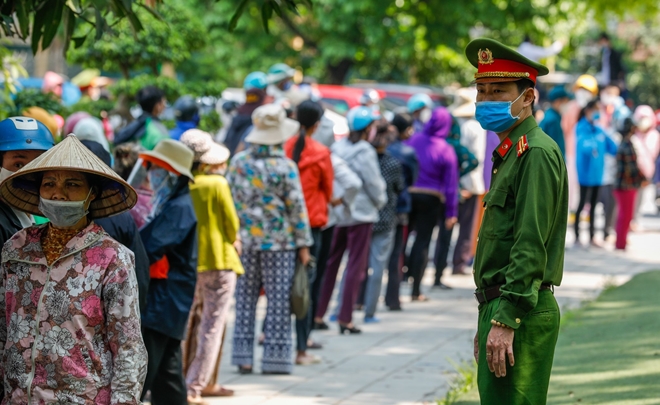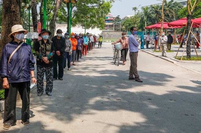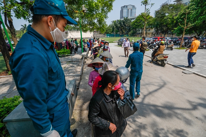 Trưa 14/4, hàng trăm người có mặt tại điểm phát gạo miễn phí ở Nhà văn hóa phường Nghĩa Tân (quận Cầu Giấy, Hà Nội). Tuy nhiên vẫn còn đó nhiều người dân thiếu ý thức cố tình chen chúc, tranh giành nhau để được vào lấy gạo trước.