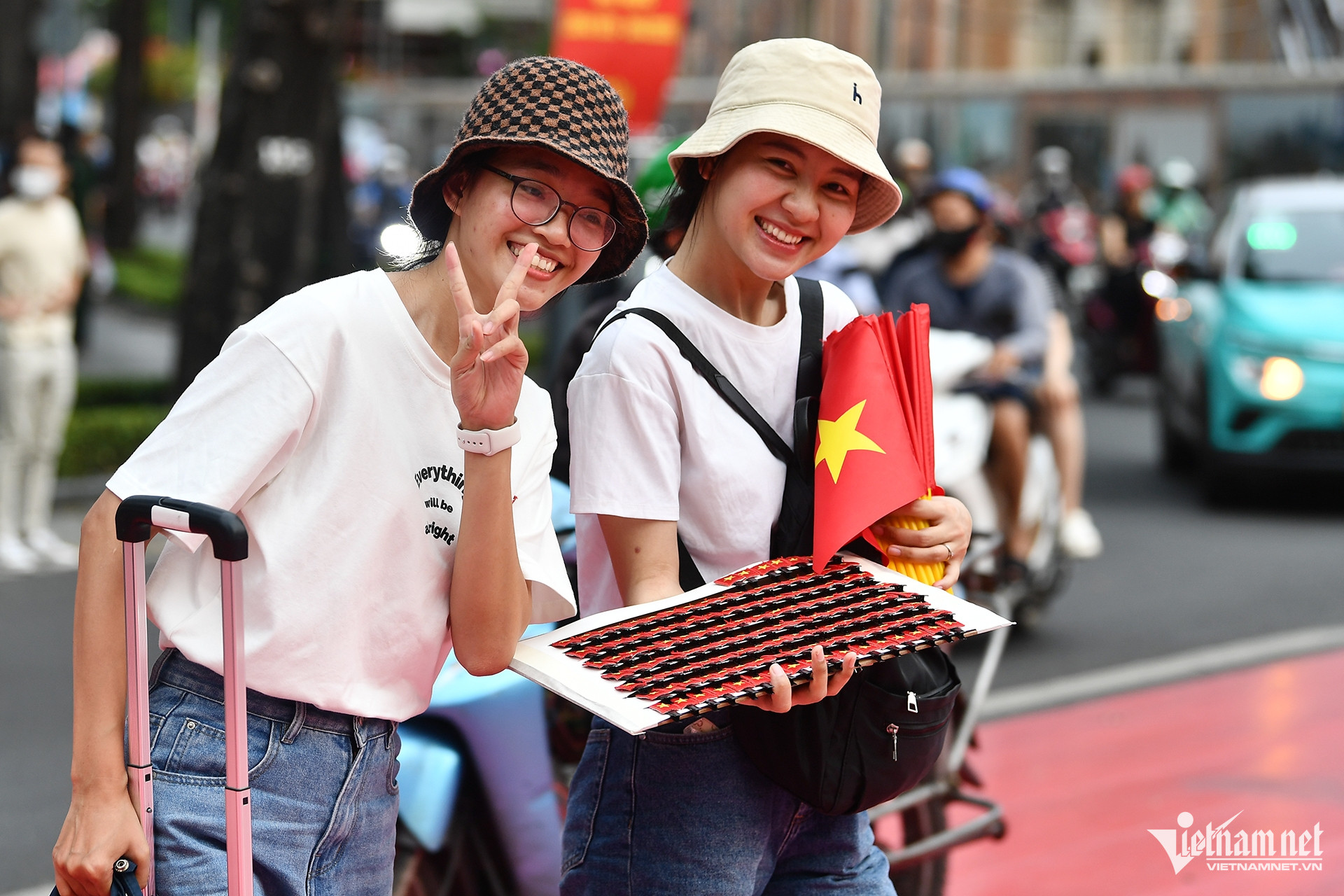 Dịch vụ bán cờ hoạt động từ sớm. Mỗi chiếc kẹp cờ ve áo này có giá 10.000 đồng.