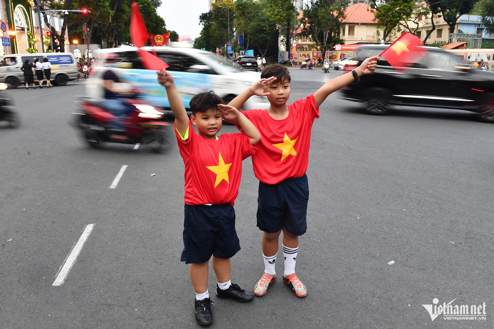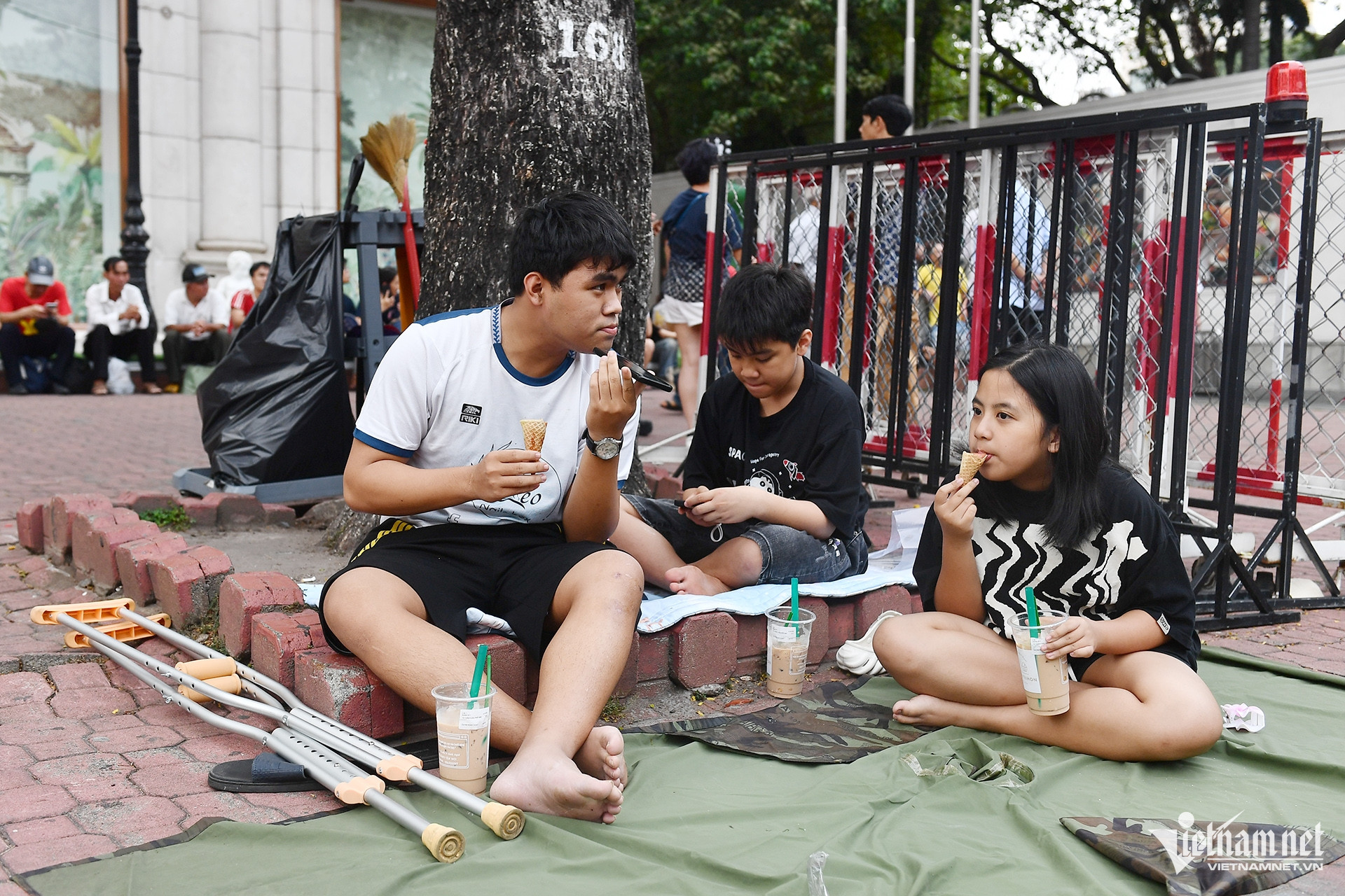 Hoàng Vũ tuy bị thương ở chân vẫn cố gắng đưa các em đi từ Buôn Ma Thuột (Đắk Lắk) bằng ô tô tới TPHCM từ hôm trước. Sau khi tham quan nhiều địa điểm du lịch, ba anh em đến gần khu vực tập kết xe diễu hành để "xí chỗ".