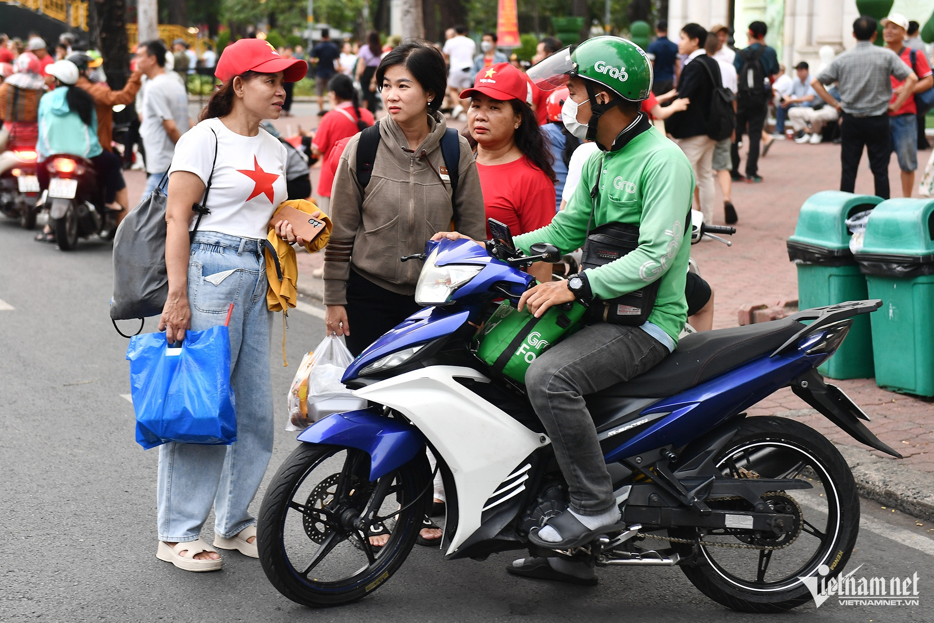 Chị Ánh Nhung và hai người em từ thành phố Huế tới TPHCM du lịch dịp 30/4. Sau khi biết không được tiếp cận đoàn diễu binh ở khu vực đường Lê Duẩn, ba người tìm xe ôm để thay đổi địa điểm ra phố đi bộ Nguyễn Huệ nhưng gặp khó khăn.