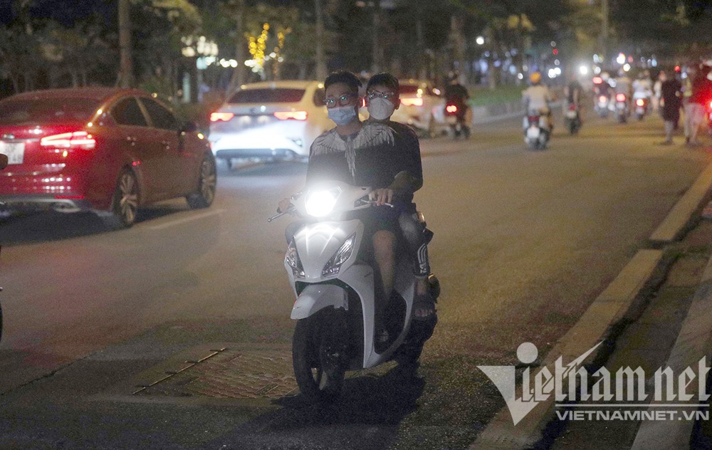 Theo ghi nhận của PV VietNamNet, tại những điểm tập trung đông người, ngoài không đảm bảo quy định 5K theo khuyến cáo của TP Hà Nội, nhiều nhóm thanh niên xuống đường trong đêm Tết Trung thu còn không đội cả mũ bảo hiểm.