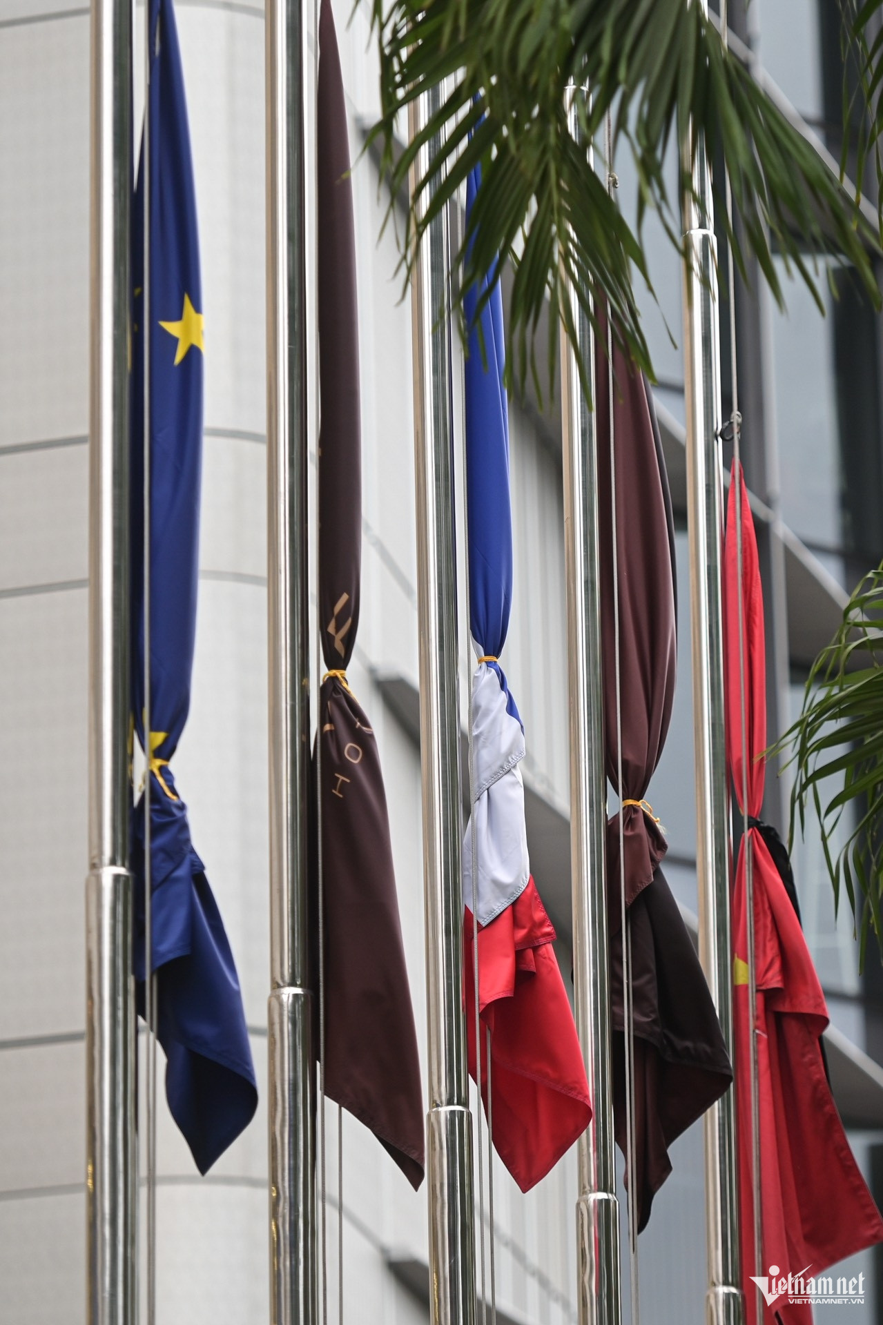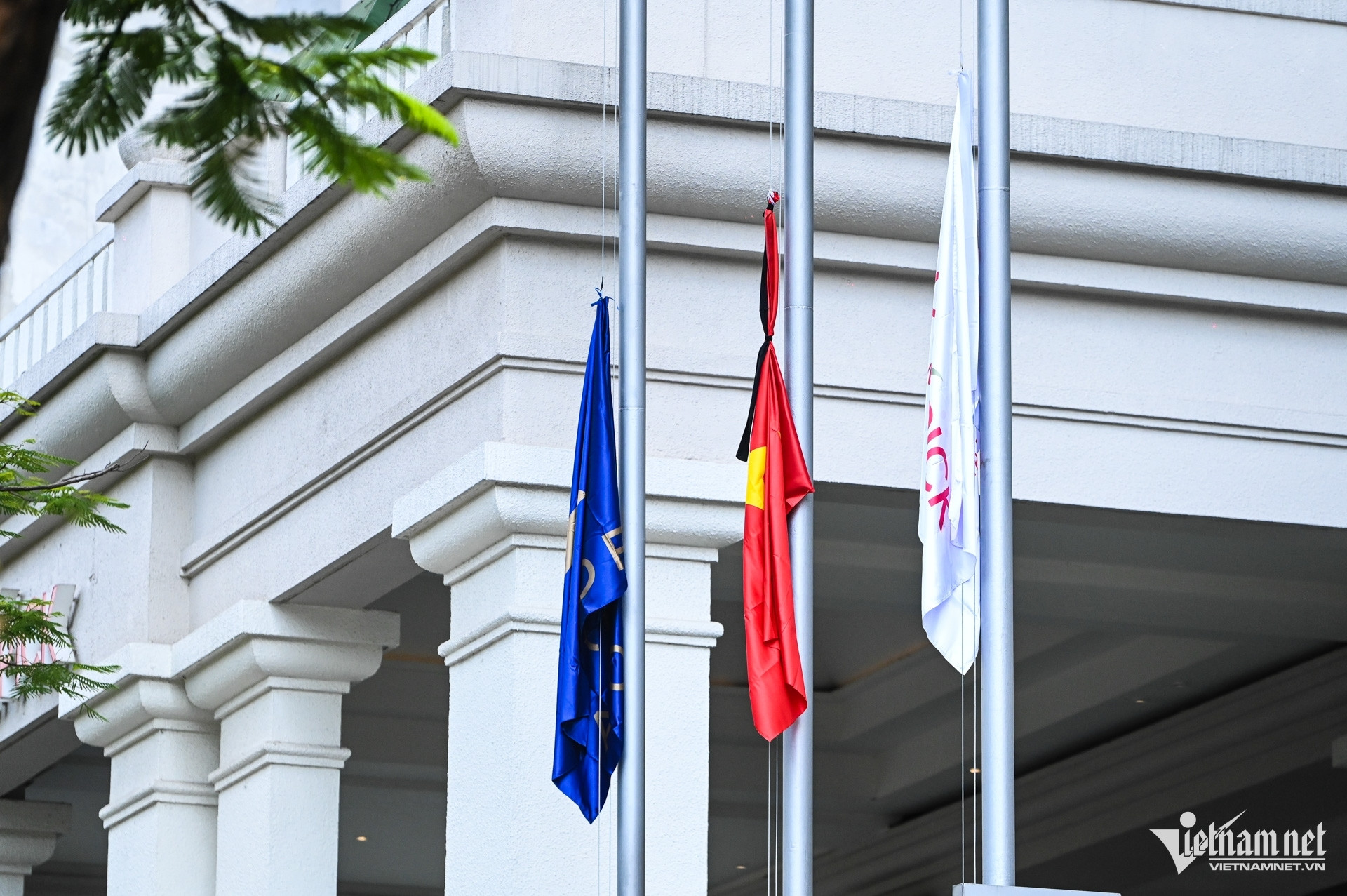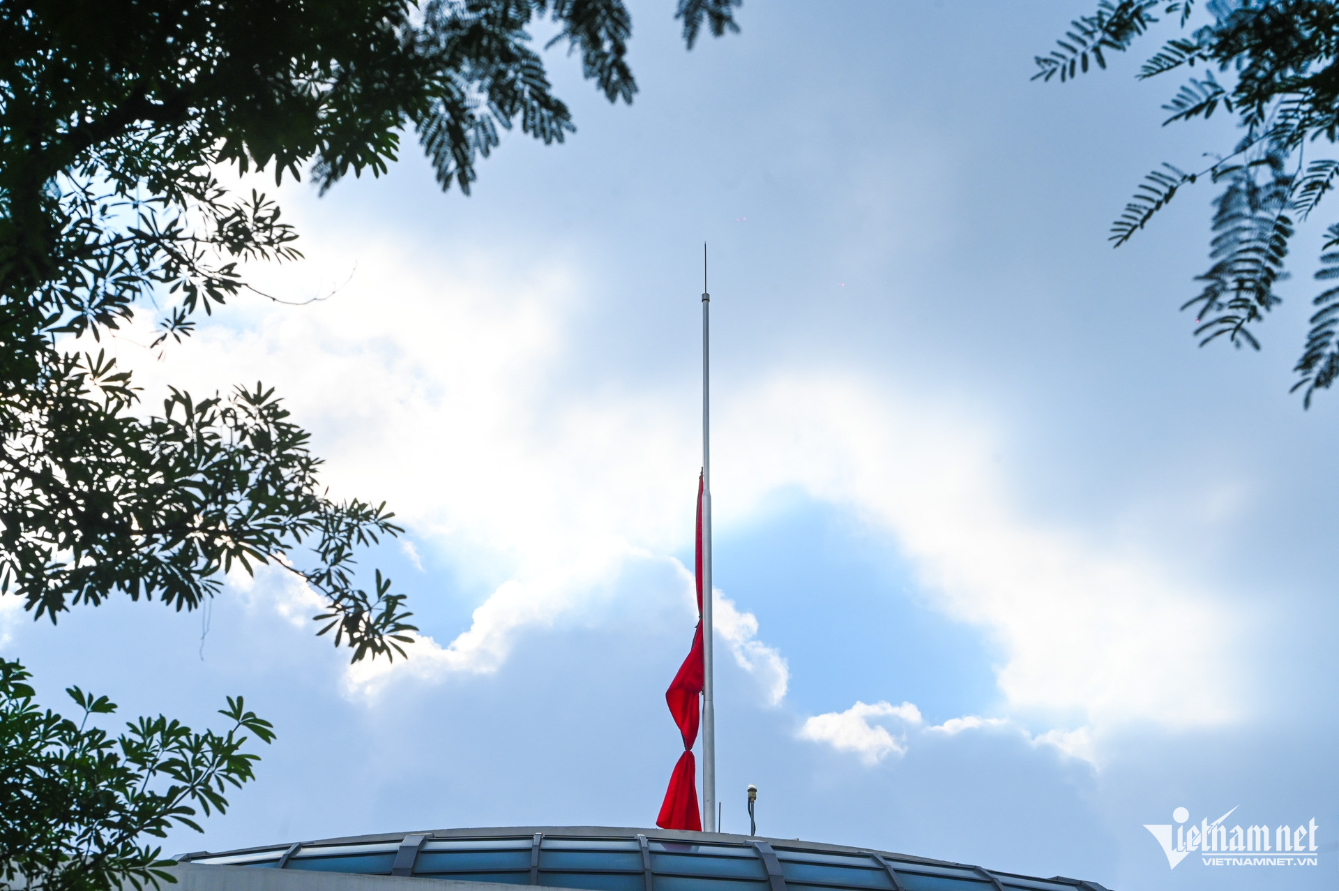 Trụ sở các cơ quan bộ, ngành, doanh nghiệp và khu di tích ở Hà Nội và TPHCM đã treo cờ rủ để tưởng nhớ Tổng Bí thư Nguyễn Phú Trọng.