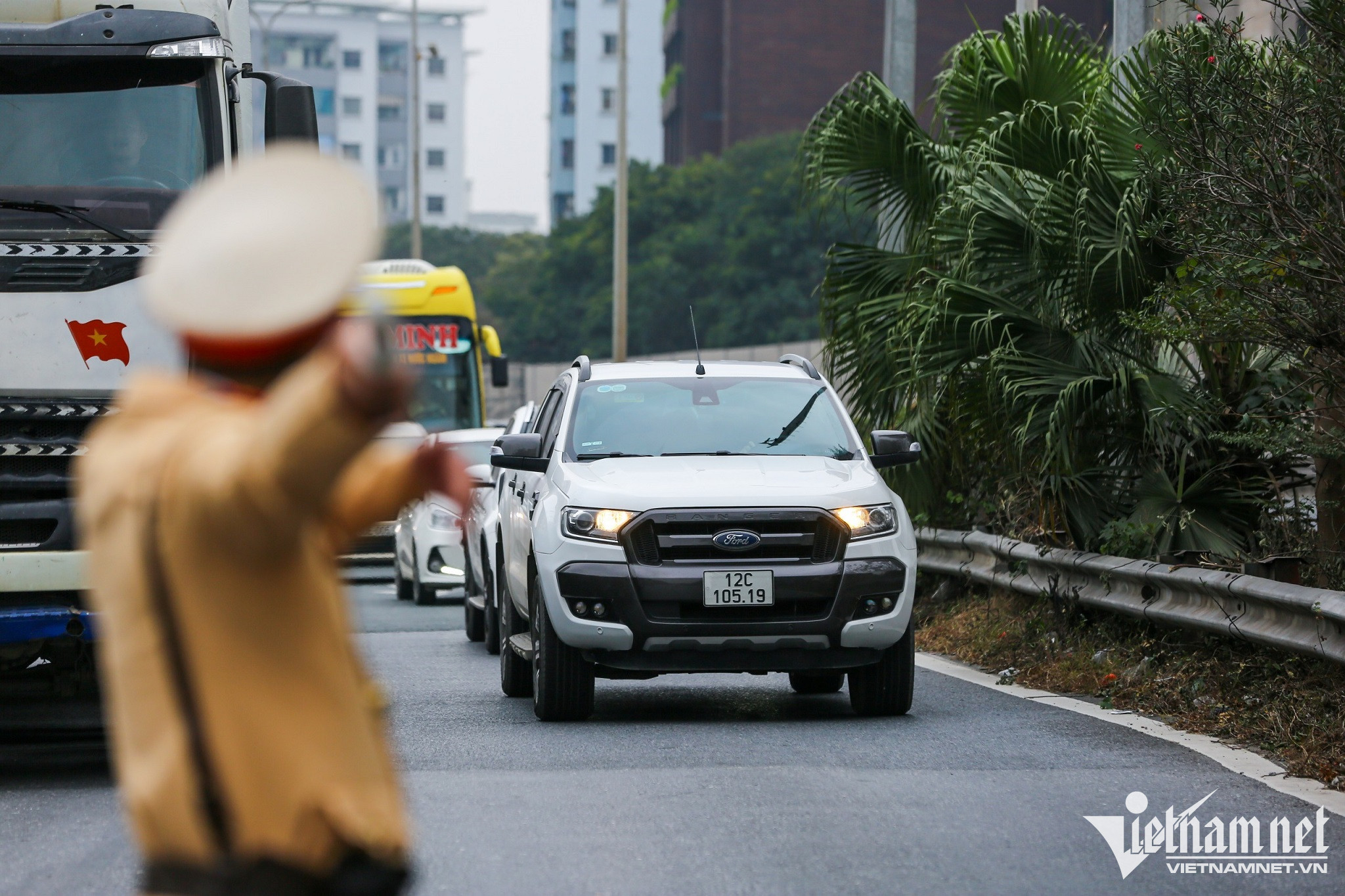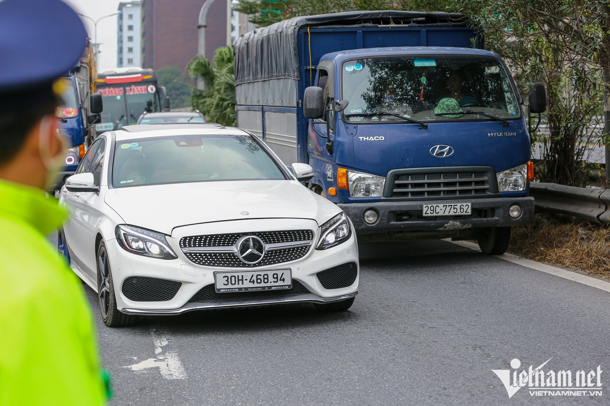 Tại khu vực trạm thu phí, đơn vị vận hành mở tối đa các trạm soát vé để giảm lưu lượng xe. Cảnh sát giao thông phân luồng ô tô đi theo đường gom để giảm ùn tắc cho nút lên vành đai trên cao và vào trung tâm thành phố.
